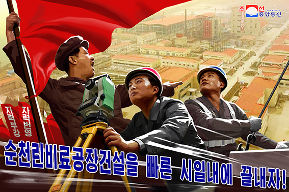 朝鲜宣传画:要早日完工顺川磷肥厂!