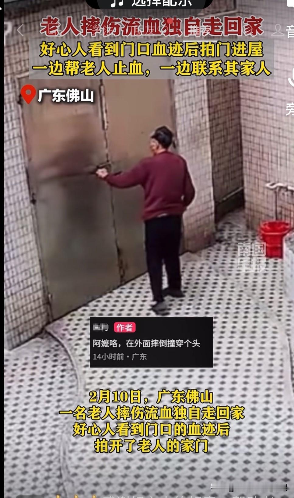 佛山,两名女子在路过一处人家时,看到门口有新鲜血迹,且血迹一直滴落到大门里面才消失,两人便敲门询问,才发现有位奶奶独自在家,头刚刚在外面摔破了。两女子于是帮奶奶止血救助,并打电话给老人家属。 这天下午四点多,两名女子刚刚从超市逛了回来,正大包小包地拎着不少的东西往家走。她们俩是好朋友,平时都在外打工,很少见面,趁着过年在家两人约着逛逛超市。 两名女子走着走着,其中一位突然“咦”了一声,指着前面一户人家的门槛:“你看,地上怎么有血?”顺着她指的方向看去,另一名女子果然也看到了地上的一小摊鲜血,再顺着血迹看过去,点点滴滴的血迹,一直延伸到这户人家的大门里面。血迹还带着点湿润,像是刚留下不久。 两女子相互看了一眼,眼里满是疑惑,这个血迹有点奇怪,会不会是屋子里面有人发生了危险?她们都从对方眼里看到了担忧。“要不敲敲门看看?”一名女子开始敲门:“有人吗”另一名女子则趴在门缝上对里面看着。 敲了好几下,里面才传来微弱的应声,紧接着是拖沓的脚步声。过了好一会儿,大门才被从里面拉开一条缝,两名女子看见一位老人颤悠悠地站在院门口,头发上,脖子上都流着血,衣服上也沾着不少,脸色苍白得吓人,连站都有些站不稳。 “阿婆,您这是怎么了?”两名女子上前一把扶住阿婆,把阿婆扶到屋里的沙发上坐下。阿婆喘着气,断断续续地说:“摔了一跤……自己走回来的……”两人瞬间明白,老人是在外面摔倒后,流着血独自走回了家。 来不及多想,两人立刻分工。一名女子眼疾手快,立即从身上拿出一包纸巾,用纸巾给老人按压止血。另一名女子则询问老人子女的电话号码。 但老人由于年纪大了,根本记不住孩子的电话,但她知道孩子们把电话写在了一个本子上,本子不知道摆在哪个抽屉里了。 经过几番努力,女子终于找到了电话号码并立即给她的家人打电话。 打完电话后,看到纸巾已经快被鲜血染红了,女子立刻跑到老人的房间里找了一条毛巾再次按压帮老人止血,还轻声安抚着:“阿婆别怕,我们在呢。” “喂,是张大哥吗?我路过你们家时看到你家门口有血迹,你妈摔倒了,头上流了好多血,你们快回来!”电话那头的张大哥瞬间慌了神,连声说“马上到”。 挂了电话,两人又守在阿婆身边,留意她的状态,阿婆意识还算清醒,只是脸色越来越苍白。 大概十多分钟后,阿婆的儿女们急匆匆地赶了回来,很快把老人送去了医院。 原来,老人有几位子女,孩子们都要接她过去一起住,但老人恋旧,舍不得离开老屋,她的孩子每天则分工好了按时间来照顾老人,一日三餐有人送饭,晚上有人陪睡。 他们中午还来看过老人,下午通过监控也看了几眼,见老人在屋里走动,就没太在意,谁能想到老人会在外面摔倒流血。直到接到电话,才知道出了大事。 后来,阿婆的儿女特意找到她们,握着她们的手一个劲地道谢:“要是没有你们,我妈这命可能就没了,真的太感谢了!” 这件事很快在网上传开了,大家都夸奖这两名女子。 有网友说,这两名女子太细心,仅凭血迹就判断出有人受伤,还敲门救了老人家,值得表扬! 有的网友说,我妈也是独居老人,家里也装了监控,每天她都对着监控说句话,我每天也是很担心她,就怕她一个人发生危险。 还有的网友说,我家老人在农村住习惯了,不愿意来城里和我们住,真拿他们没办法,只能每天打电话问候。 是啊,这世上最让人暖心的,从来不是惊天动地的大事,而是遇事时陌生人伸出的一双手,是街坊邻里之间相见时的一句问候,是平凡的日子里点点滴滴的陪伴。 取材网络,侵删,个人观点,仅供参考。