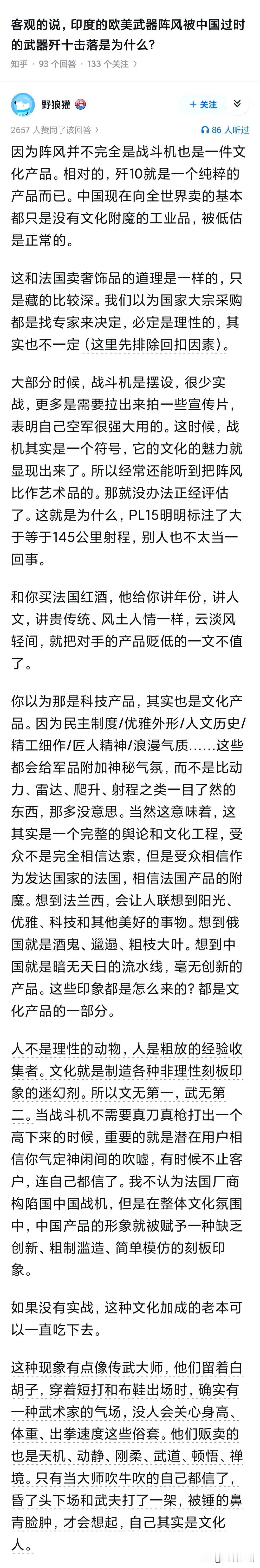 这个角度好,法国阵风战斗机其实是一件法国奢侈品,法国阵风战斗机卖得好要感谢法国的文科生,其实文科很有用,文科生很有用,所以,也希望中国的文科生朋友们多多努力,让中国的产品也能早日卖上好价格!!!