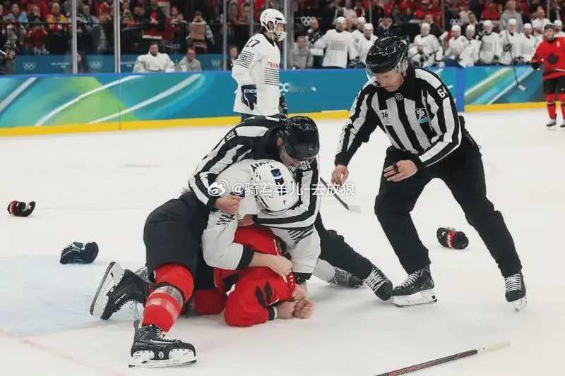 冬奥首场斗殴:2位2米大汉近身肉搏,摁地上狂捶,把2裁判忙坏了冬奥首场斗殴 北京时间2月16日凌晨,米兰冬奥会,男子冰球小组赛,加拿大对阵法国队。比赛中,两队球员爆发了激烈的冲突,场面很是火爆。最后,打架的2名球员全部被罚出场。