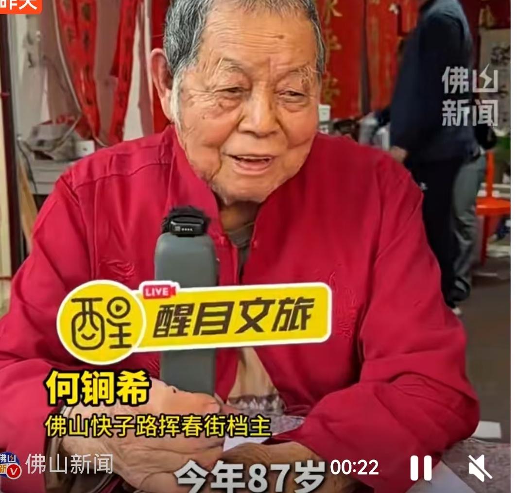 2026年春节前夕,广东佛山的一处街头成了当地最热闹的“景点”,一位87岁的阿伯