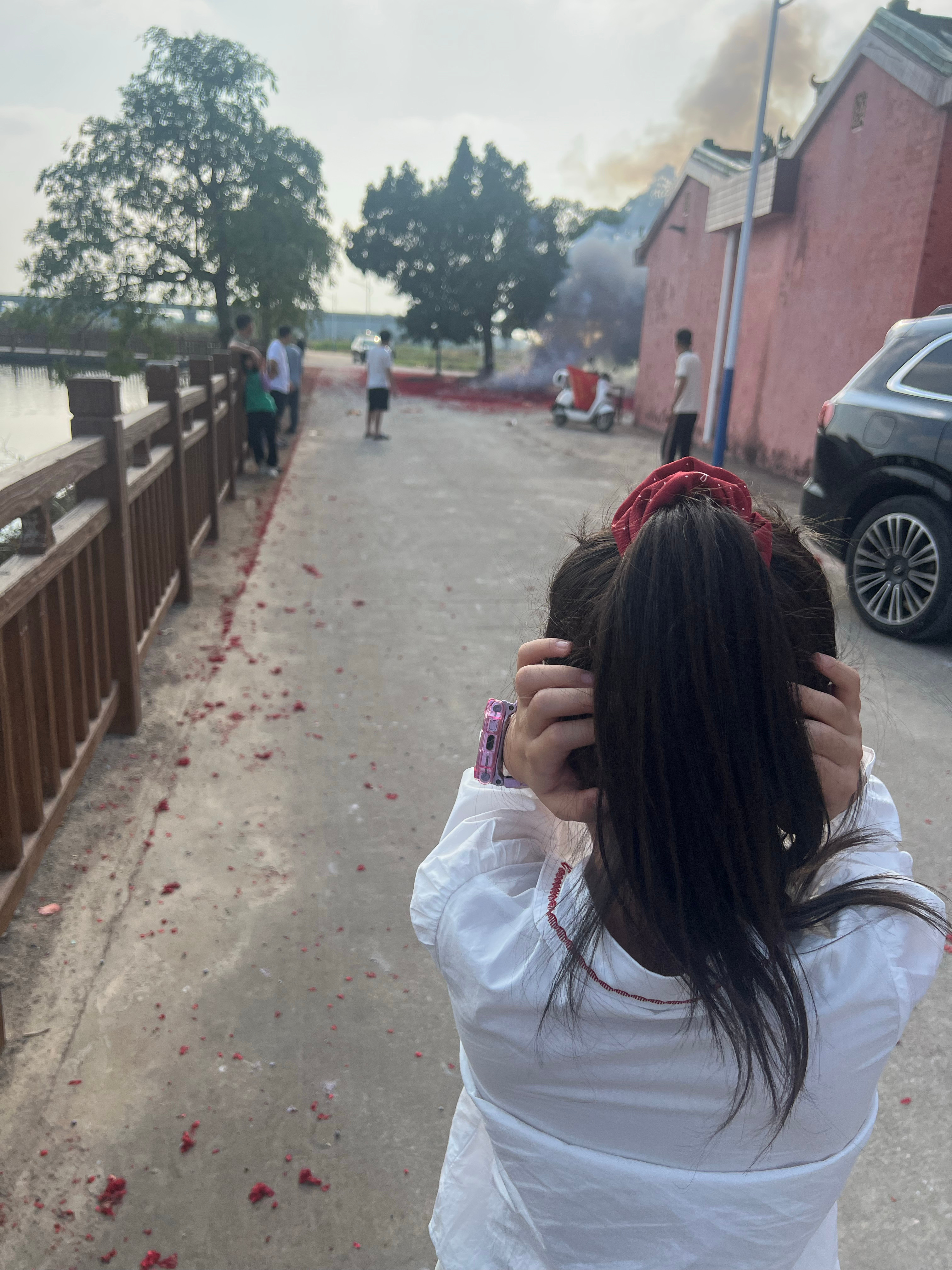 米米又爱看放鞭炮又害怕刚才去拜公了~每年我们都跟着去~村里的景色真不错好好过大年