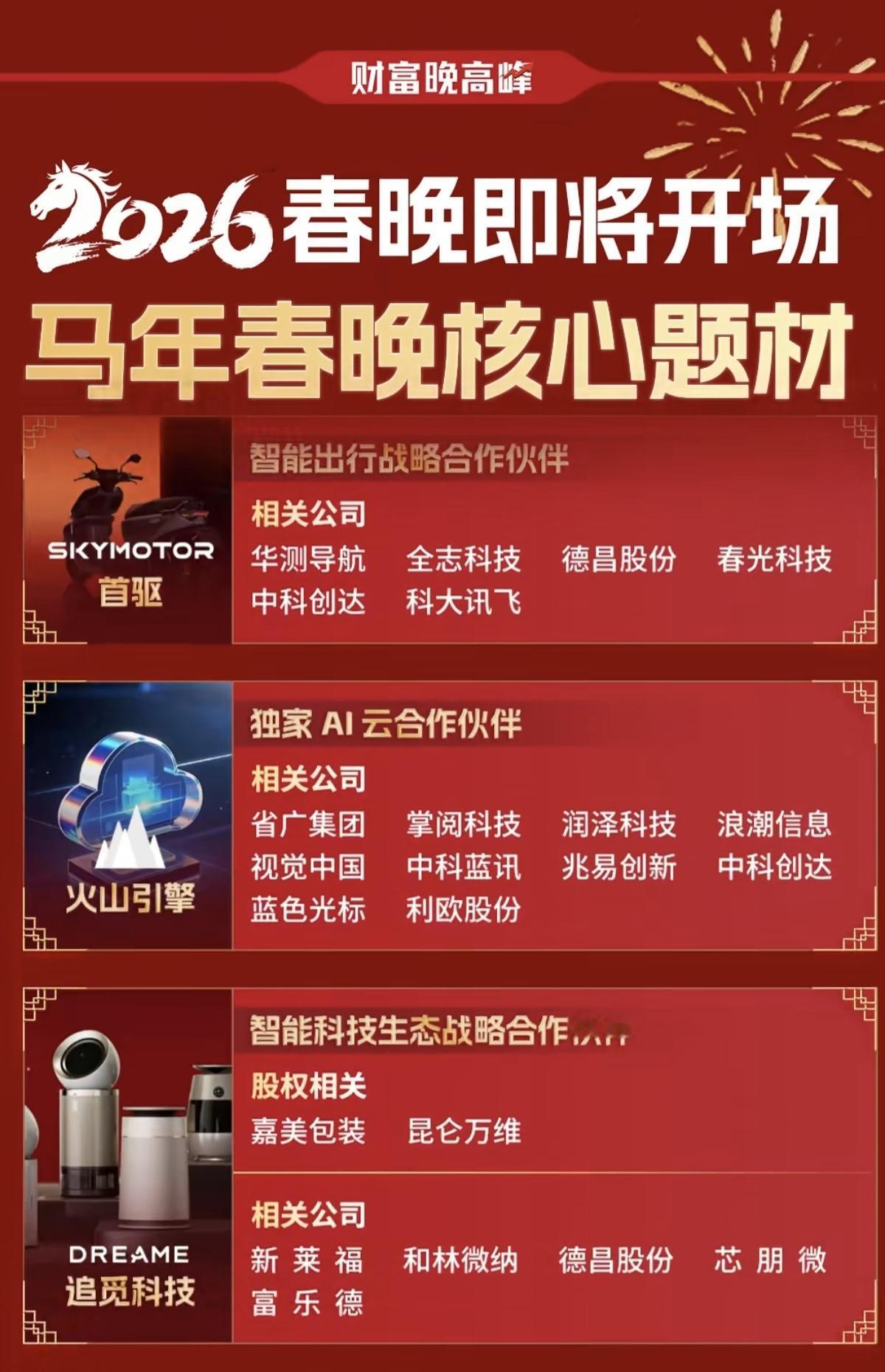 马年春晚核心题材! 1.智能机器人战略合作伙伴 2.春晚指定具身大模型机器人 3.智能出行战略合作伙伴 4.独家AI云合作伙伴 相关核心龙头股: