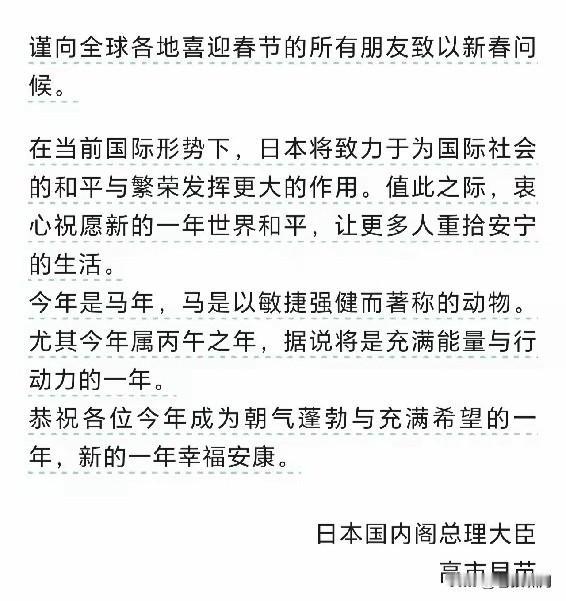 中国人欢庆春节,国外华人同情共庆!美欧华人走上街头,舞龙舞狮载歌载舞,不少当地人加入不亦乐乎! 网友有点诧异:中国春节对于美欧人,应该也是“洋节”,他们为何没抵制?还加入?不怕稀释美欧文化浓度? 值得一提的是高市早苗,也向全球喜迎春节的朋友致以问候!恭祝各位马年腾跃,新一年朝气蓬勃幸福安康! 有网友猜测:这是在向中国示好吗? 有网友质疑:她又没有专指我们中国! 有网友反驳:世界上过春节的中国人数最多,人家祝贺春节就包括我们了! 苍狼还是那句话:我们对于美欧日韩关系,都应高度重视!有矛盾分歧,坚持原则据理力争,着眼未来合作发展最重要。只有持续发展才能实现复兴梦! …………