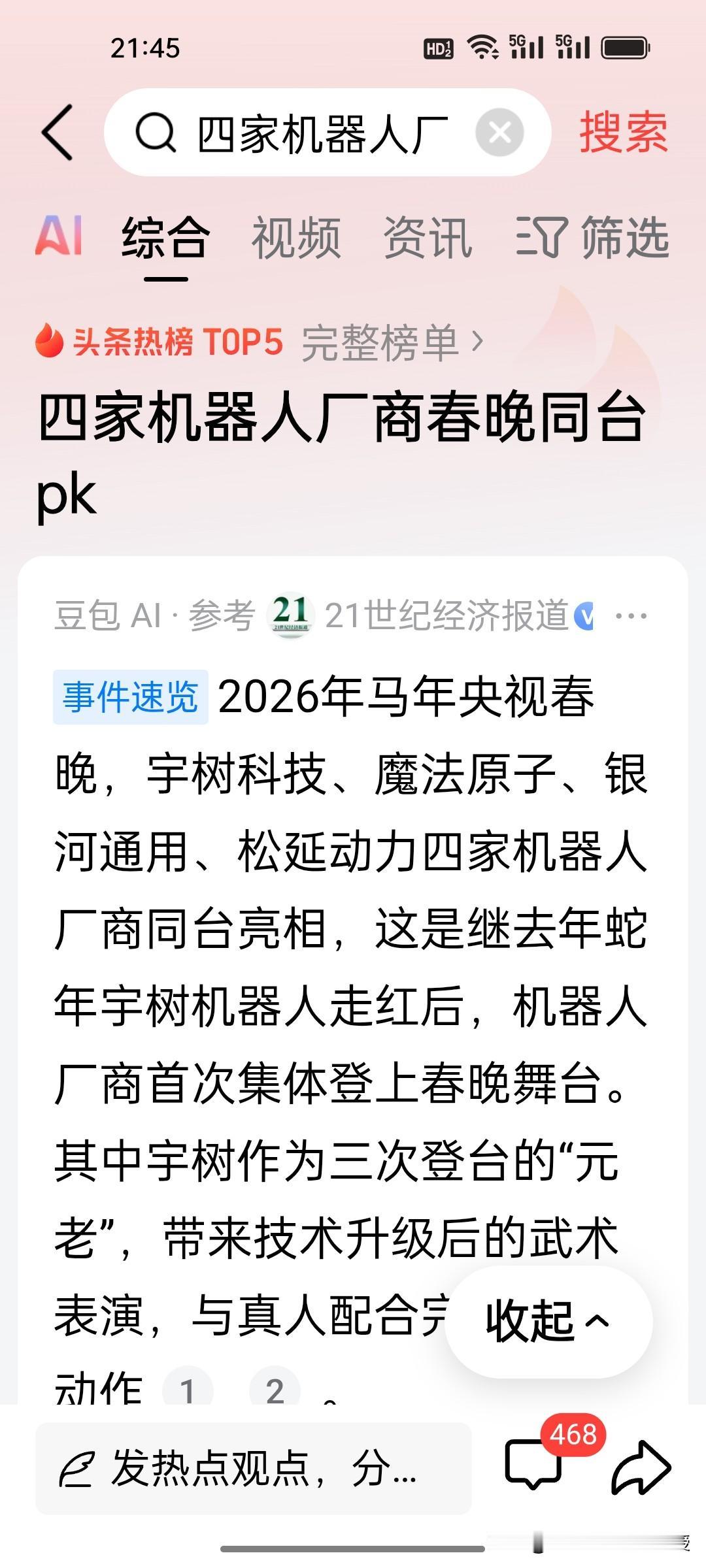 刚刚,有网友调侃:今晚五角大楼又该猛订披萨,因为要全程紧盯春晚了!今年春晚机器人节目多达4个,远超小品数量,堪称全球顶级的机器人竞技场。 从扭秧歌升级到全能表演,后空翻、醉拳,武术、双截棍......各种招式行云流水,国产机器人进步神速,波士顿动力早已甩在身后。 多家机器人企业集体登春晚,原因有三个: 1. 国家战略背书:机器人产业是“十四五”重点赛道,春晚作为国家级舞台,是展示科技强国战略成果的最佳窗口。 2. 商业化落地加速:中国机器人已从实验室走向工厂、家庭,春晚亮相是向全球市场释放“中国造”成熟可靠的信号。 3. 技术迭代爆发:短短一年从“会扭”到“全能”,背后是算法、材料、控制技术的集体突破,中国智造已经完美超车。 这波中国速度的“科技炫技”,真的看得太过瘾!