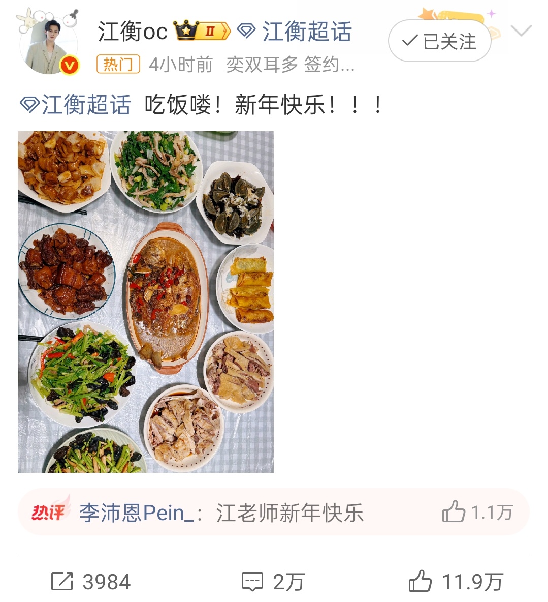 江衡吃上年夜饭了江衡晒年夜饭,李沛恩:江老师新年快乐!