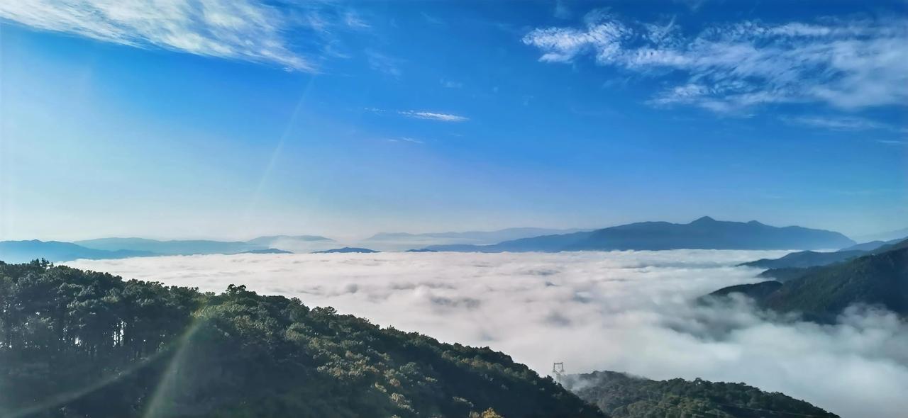 云海之上,山峦叠翠,人间仙境立于云海之上,仿若与尘世隔绝,唯余眼前连绵不绝、翠色相拥的山峦。阳光穿透淡薄云雾,倾洒在葱郁山林间,似为每片叶子都镀上了金边。微风轻拂,云雾悠悠流动,山峦在其中时隐时现,宛如羞涩仙子,半掩着绝世容颜。 极目远望,远处山峰连绵不断、层层叠叠,直至天边。有的山峰高耸入云,好似利剑直插云霄;有的山峰圆润柔和,宛如大地母亲温暖怀抱。山间溪流潺潺,在阳光下闪烁银光,仿若仙女遗落的珍珠。 我静立在这人间仙境,贪婪呼吸清新空气,感受大自然的神奇美妙。随手一拍的风景,定格了眼前美丽,也让我在喧嚣世界觅得宁静港湾。生活美好常在不经意间,用心发现,平凡日子便能邂逅无数惊喜。