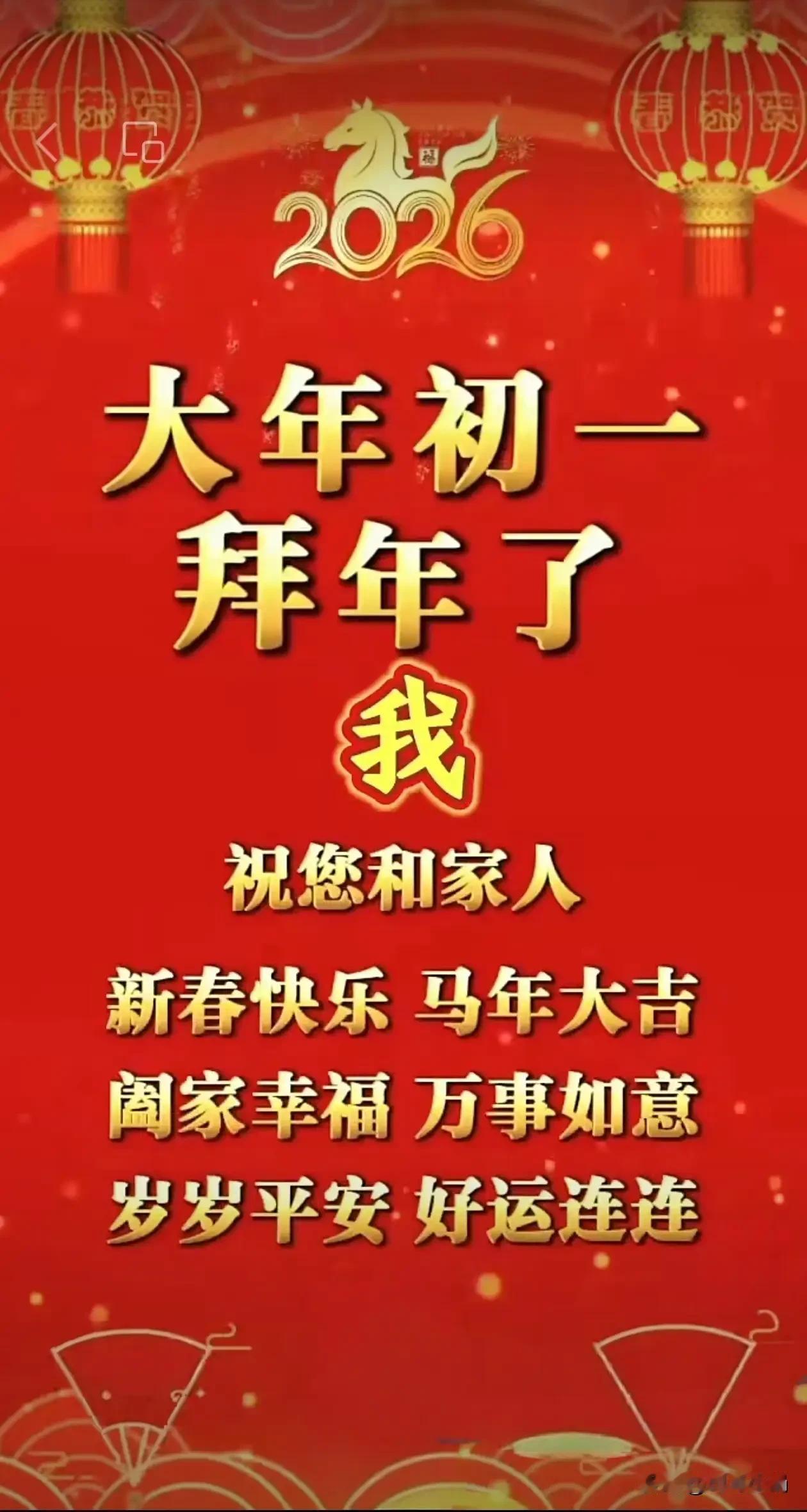 大年初一,司马小绢给大家拜年了, 我祝您和您的家人 新年快乐!马年大吉。 阖家幸福!万事如意。 岁岁平安!好运连连。