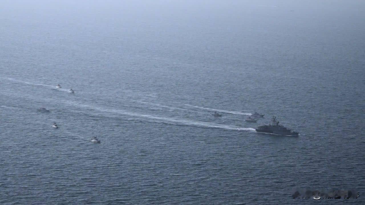 伊朗伊斯兰革命卫队海军在波斯湾伊朗岛屿举行军事演习,这是演习第一阶段的画面。