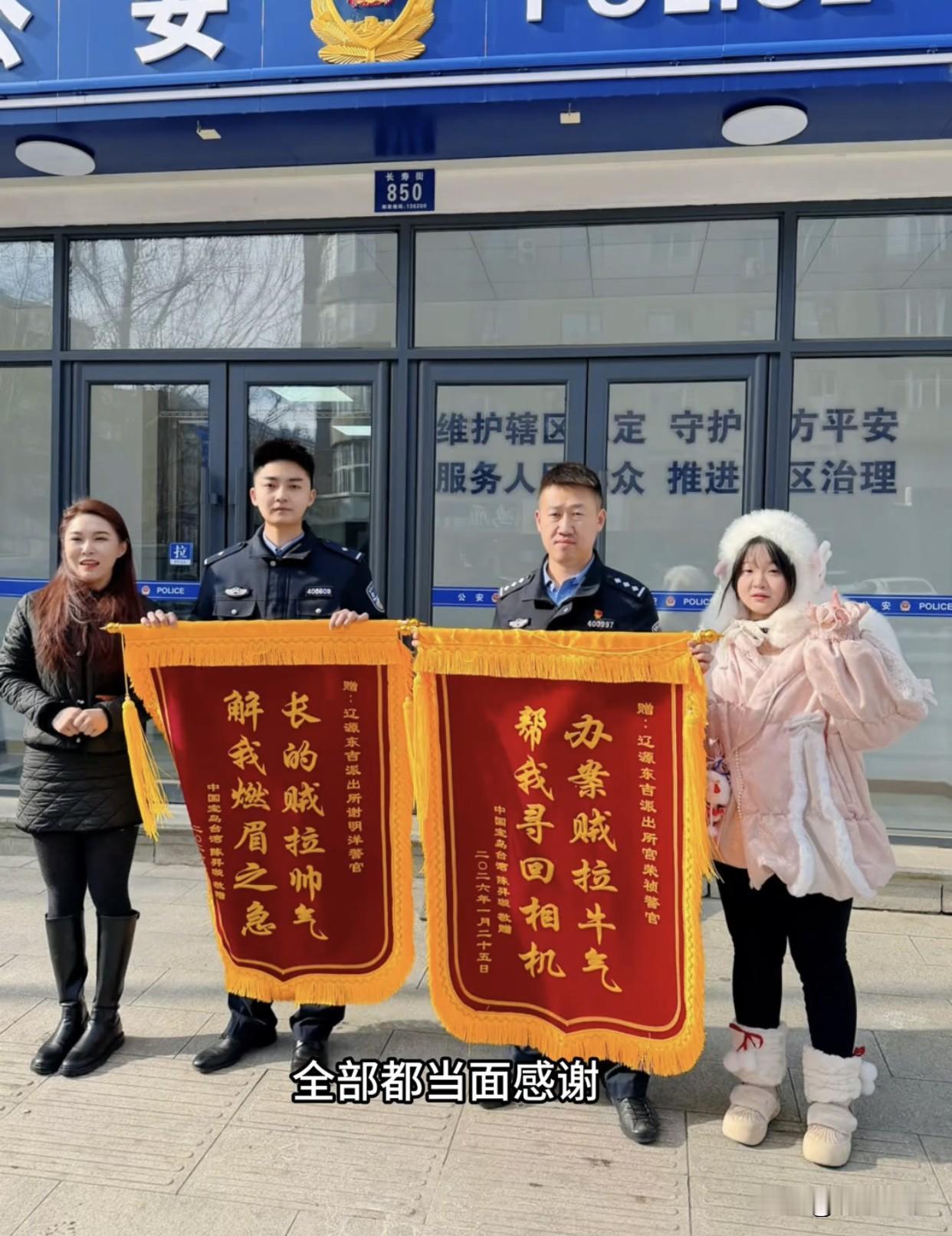 太暖心!台湾网红丢相机,吉林警察4小时找回,锦旗上这6个字看哭所有人! 台湾网红陈羿璇在吉林辽源旅游,不小心把大疆相机落在出租车上,里面全是珍贵素材。她急得不行,报警后,民警连夜调监控、帮忙寻找,还贴心送她回酒店,只用4小时就把相机找回来了。 网友纷纷劝她:一定要送锦旗,署名就写宝岛台湾。这姑娘太实在,真听劝,不仅送了电子锦旗,还专门跑回去,亲手送上两面写着“中国宝岛台湾”的锦旗,诚意满满。 一件小事,看得人心里暖暖的。没有炒作,没有剧本,就是最真实的善意。出租车司机热心帮忙,民警认真负责,两岸同胞互相尊重、彼此温暖,这才是两岸一家亲最好的样子。 民警守护的不只是一台相机,更是两岸同胞的安全感;姑娘送上的不只是一面锦旗,更是发自内心的家国认同。绿媒再怎么抹黑,也挡不住真实的交流、真心的感动。 血浓于水,不分你我。一件小事暖透人心,一面锦旗见证真情。愿两岸多走动、多亲近,人心更近,未来更亮!