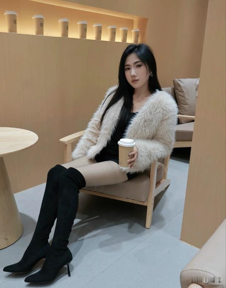 这套穿搭把“贵气感”和“复古氛围”融合得超绝!灰调毛绒外套自带高级质感,黑内搭+