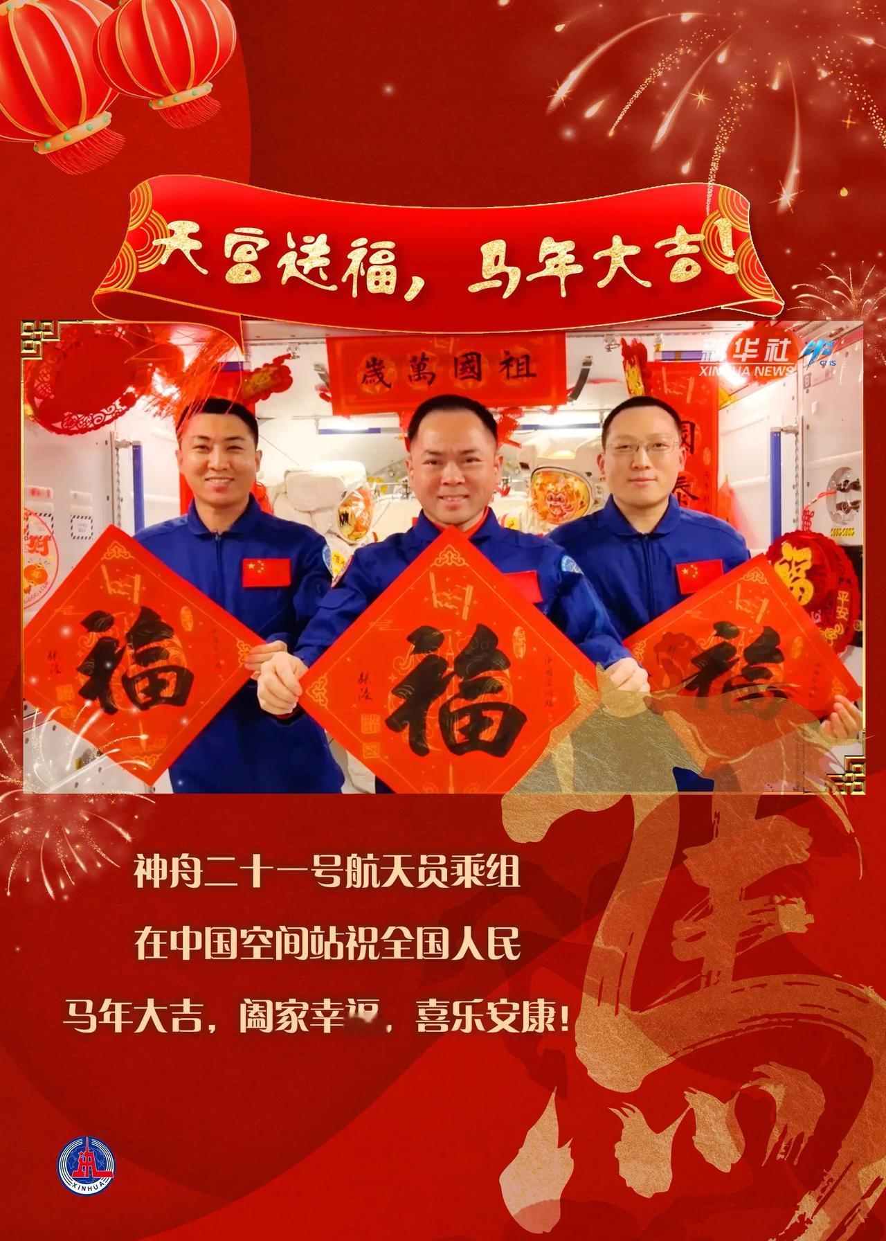 来自天宫的新春问候请查收:这才是中国人最顶级的浪漫与底气 大年初一,全网都在晒团圆、晒祝福,而一份跨越400公里高空的问候,瞬间让无数人破防。神舟二十一号乘组从中国空间站发来马年新春祝福,春联、福字、太空年夜饭,搭配一句“马年当有奔马的闯劲”,把家国情怀与新年期许写进了浩瀚星河。 很多人说,这是宇宙级的年味。失重环境里贴春联、烤蛋糕,快板报菜名道出酱肘子、笋干肉的吉祥寓意,航天员们在太空把春节过得热气腾腾。他们遥望祖国万家灯火,把思念藏进星河,把责任扛在肩头,让传统年味与航天硬核浪漫撞了个满怀。 这份问候从不是简单的拜年,而是中国人刻在骨子里的浪漫:我们既守得住人间烟火,也追得了星辰大海。当别人还在纠结年味淡了,我们已经把春节过到了太空;当我们还在为生活奔波,有人正替我们在苍穹之上,守护家国安宁,探索未知边界。 有人问,航天离普通人很远吗?其实不然。天宫的每一次升空,每一次祝福,都是国家科技的底气,是我们安心生活的靠山。那些看似遥远的探索,最终都化作平凡日子里的安全感与自豪感。新的一年,航天员在太空策马探苍穹,我们在人间为梦想打拼,彼此呼应,双向奔赴。 马年已至,天宫送福,星河入梦。这不仅是新春的问候,更是前行的力量:愿我们以航天精神为帆,以奔马闯劲为翼不慌不忙,向阳而行。 这份来自天宫的祝福,你收到了吗?新的一年,愿我们都能心怀宇宙,脚踏实地,奔赴属于自己的星辰大海!