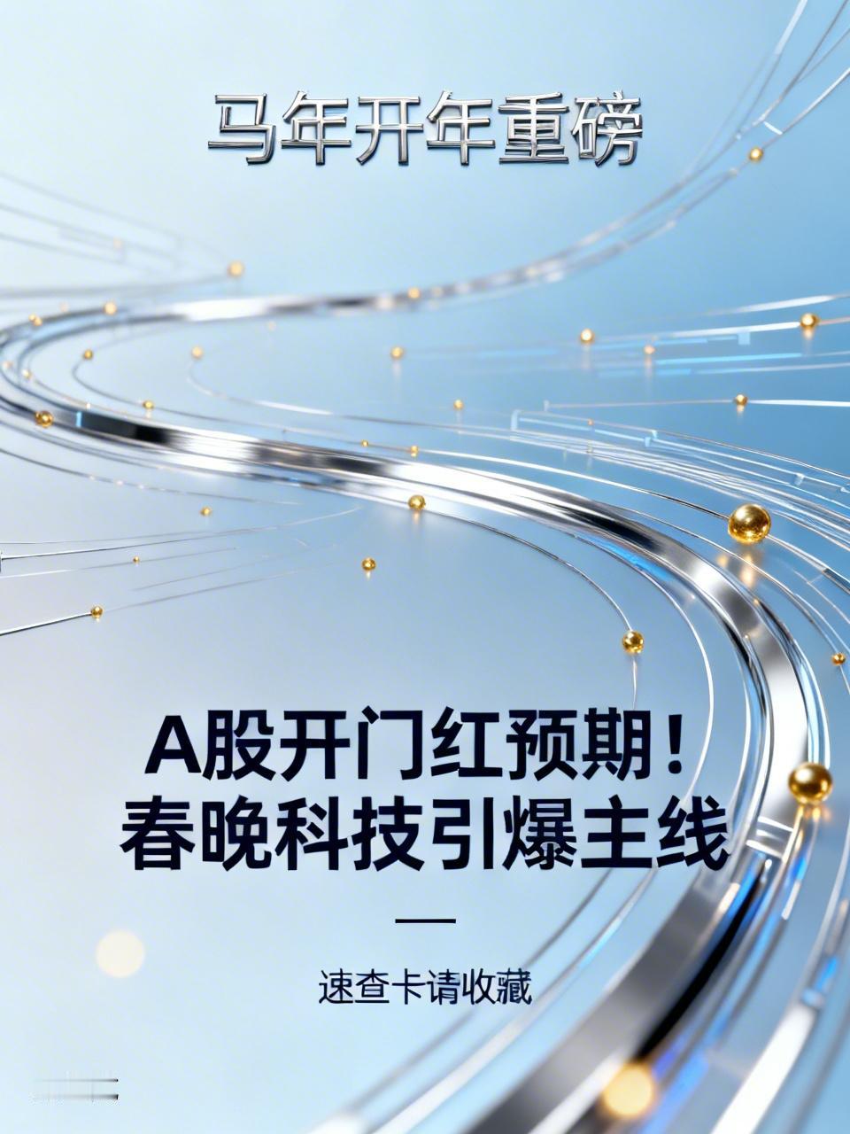 【马年开年重磅】A股开门红预期!春晚科技引爆主线,这份速查卡请收藏 大年初一,马年启新,万象更新。 对于每一位投资者来说,春节过后最关心的无非两件事: 节后A股能不能开门红? 开年第一波主线到底在哪? 今年央视春晚,堪称一场震撼的“科技大秀”。 人形机器人组团登台、AI数字人惊艳全场、沉浸式舞台效果拉满。这不仅仅是视觉盛宴,更是国家级的产业信号,与A股“新质生产力”主线高度共振。 结合历史规律、资金面与政策窗口,我们可以明确判断: A股节后开门红已是大概率事件,结构性机会远大于指数机会。 下面直接上干货,不啰嗦、不绕弯,开盘照着做就行。 一、马年开门红,三大底气十足 1. 历史规律支撑 过去多年数据显示,春节后5个交易日上涨概率较高,节后到两会期间,更是全年胜率最稳的时间窗口。 2. 资金蓄力待发 节前市场缩量休整,属于典型的“蓄力起跳”形态。长假过后,北向资金回流、机构资金回流、居民理财资金回流,三重增量资金有望推动市场放量上行。 3. 政策暖风不断 2026马年是十五五开局之年,新质生产力、科技创新、高端制造、稳增长政策持续落地,市场风险偏好稳步抬升。 一句话总结: 马年A股开门红可期,重点不在大盘暴涨,而在科技主线大爆发。 二、春晚科技刷屏:两大主线定调全年 1. 人形机器人——最强硬核主线 本届春晚,多家人形机器人企业同台亮相,舞剑、打拳、互动、表演,动作流畅、协同精准。 这标志着:国产人形机器人,正式从实验室走向国家级场景验证,商业化全面提速。 A股重点关注核心供应链: ① 精密减速器:绿的谐波、中大力德 ② 伺服电机:鸣志电器、卧龙电驱 ③ 3D视觉:奥比中光 ④ 具身智能:天奇股份 2. AI大模型 & 数字人——算力先行 AI水墨动画、数字人分身、沉浸式舞台,背后都是大模型与算力在支撑。 春晚再一次证明:AI不再是概念,而是真正落地的生产力。 重点方向: ① 算力芯片:寒武纪、海光信息 ② 服务器:浪潮信息 三、马年A股开市·速查卡 1. 开盘30分钟·3个关键信号 ① 量能达标:两市成交额 ≥ 2100亿,开门红才真实 ② 外资给力:北向资金净流入 ≥ 20亿,行情更持久 ③ 普涨健康:上涨家数>下跌家数1.5倍,赚钱效应才足 2. 一眼定操作 强势行情 机器人核心领涨 + 放量 + 北向持续流入 → 大胆做主线 弱势行情 缩量上涨、只涨指数不涨个股 → 减仓不追高 避险行情 放量大跌、主线领跌、关键支撑破位 → 轻仓先观望 四、开市6句黄金口诀 半小时量够大,开门红才真稳 北向资金往里冲,行情才有持续性 主线一起涨,赚钱才像样 放量主线强,大胆做主线 缩量个股弱,减仓不追高 破位资金跑,轻仓先观望 结语:马年乘势而上,抓准科技主线 马年寓意奔腾向上,A股同样有望在新质生产力的驱动下,走出一轮结构性牛市。 节后开门红概率高,而春晚引爆的人形机器人、AI算力两大科技主线,大概率成为贯穿全年的核心方向。 操作记住三句话: 量能定真假,科技定主线,口诀定操作。 祝各位读者: 马年大吉,投资顺利,账户长红,步步新高!