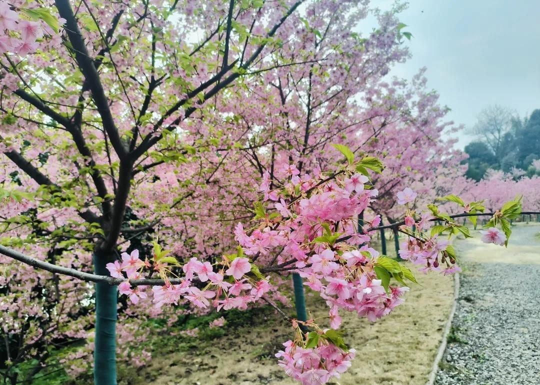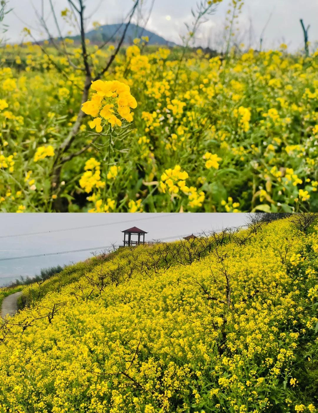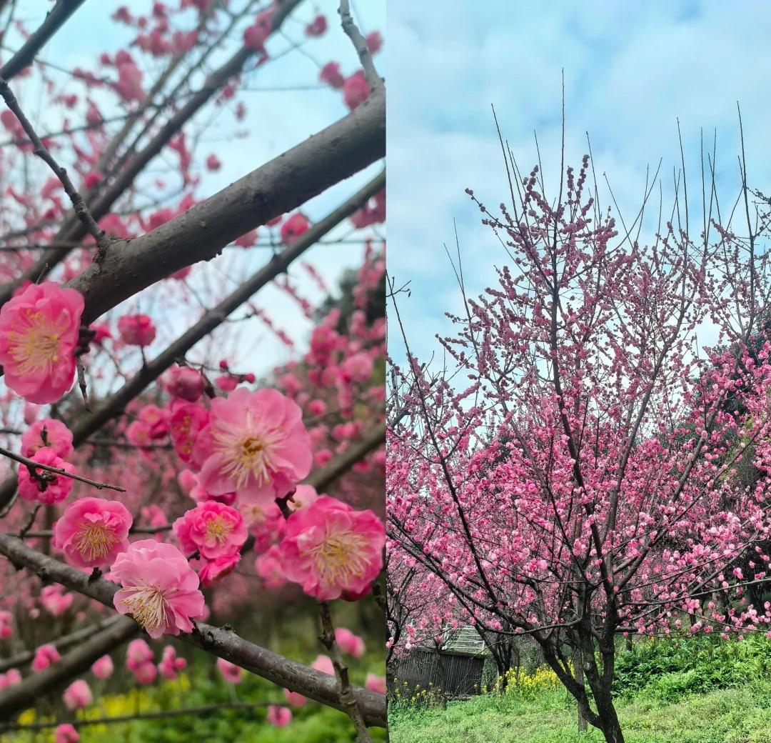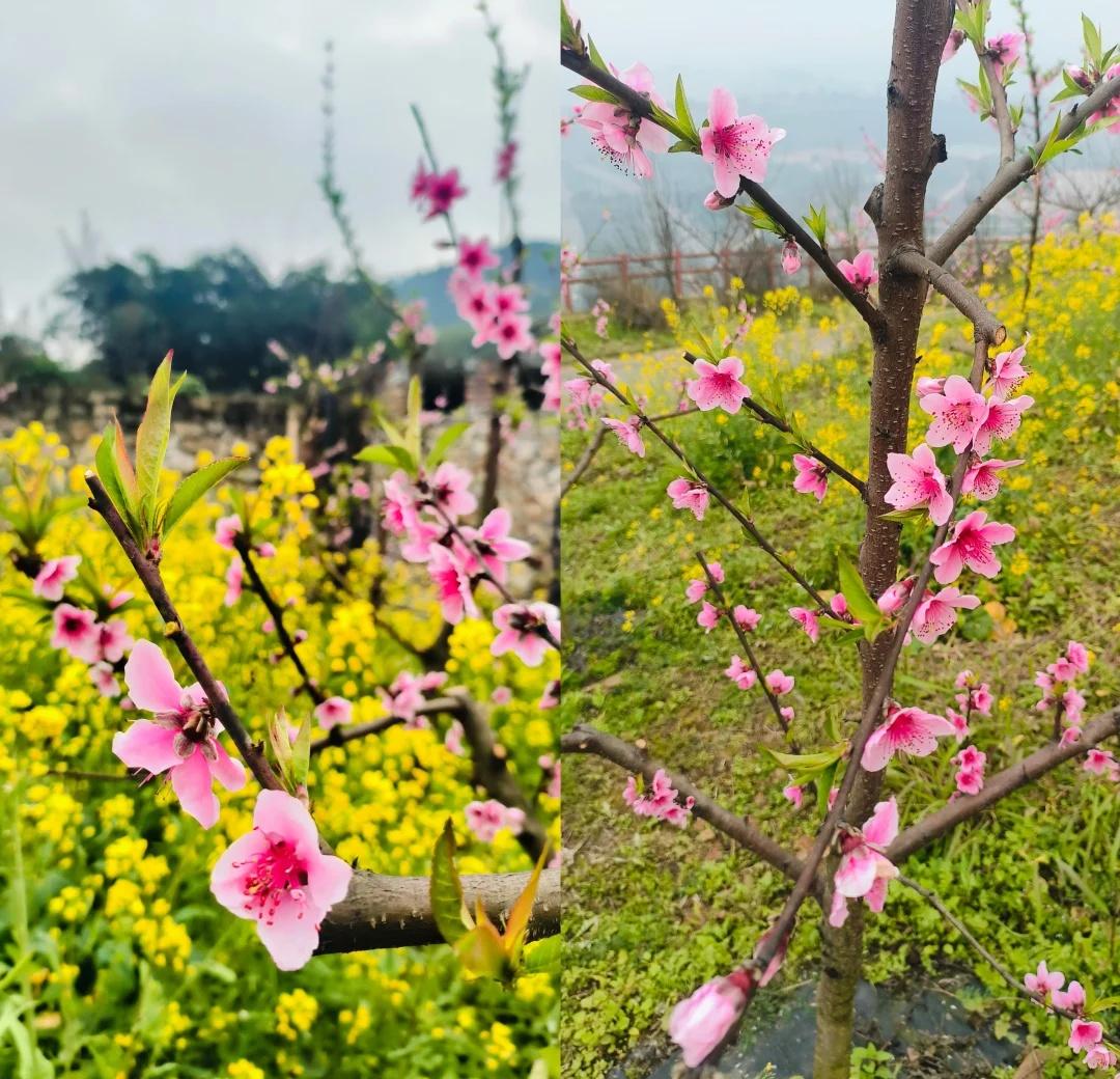 北碚中梁赏花局|四花连赏 春天最好的打开方式,就是走进花海里 --- 🗺️ 路线概况 · 路线:北碚文凤村乐和广场 → 油菜花田 → 桃花园 → 红梅园 → 太寺垭 樱花园→ 原路返回 · 距离:约6公里(往返) · 路况:乡村公路+步道,全程好走 · 导航停车:导航“北碚文凤村乐和广场”,有免费停车位。 --- 🌸 分段赏花记 1. 油菜花田 | 金黄开场 停好车往山上走,最先迎接我们的是大片大片的油菜花田。黄灿灿的花海在阳光下格外耀眼,春天的气息扑面而来。 2. 桃花园 | 粉嫩余韵 再往上走,路过一片桃花园。桃花已经过了最繁盛的时节,枝头还剩些粉嫩的花瓣,虽不如盛花期热烈,但搭配着油菜花田,也别有一番意境。 3. 红梅园 | 暮春收尾 继续上行,经过一片红梅园。红梅同样已过花期,枝头花头不多。 4. 太寺垭 | 樱花震撼压轴 最后到达太寺垭。这里的红梅和樱花正值盛放,特别是那片樱花,粉粉嫩嫩、开得极其繁茂,风一吹,花瓣飘落,浪漫得不像话满眼都是春天的温柔。 5. 原路返回 | 回味花香 看完樱花,心满意足地原路下行。 ” 北碚赏花 太寺垭樱花 重庆赏花 春日徒步 油菜花 周末去哪儿
