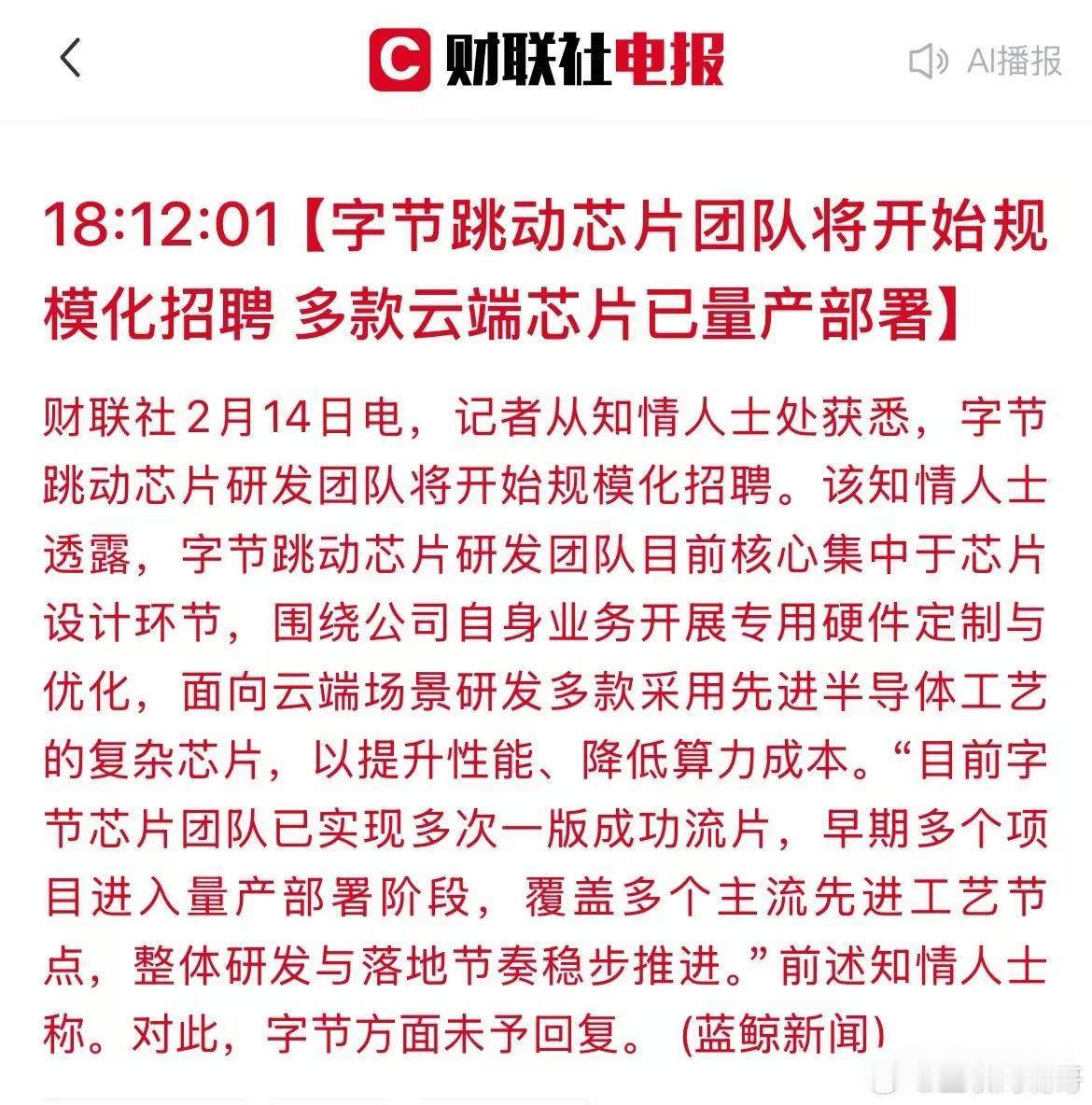 春节过后,芯片半导体以及人工智能可能会出现大涨!字节跳动已经开始研制自己所发展的芯片,已经实现量产布局,去字节跳动目前公布的AI人工智能大模型来看,在全球确实引起了很大的反响,而且在技术创新以及技术突破超越了美国很多大型AI公司!甚至有些美国媒体说,中国的AI技术在生成视频方面可能会冲击美国好莱坞制片!因为中国的这种技术已经可以实现多种技术创新,非常逼真!可以做到多场景应用,多镜头的运用,实现AI电影制片!
