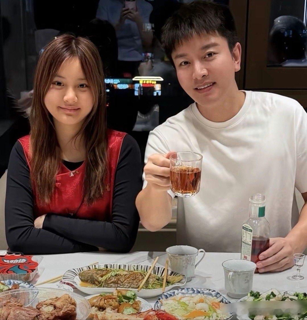 贾乃亮和甜馨一起过年,发的全家福合照贾乃亮发与甜馨合照