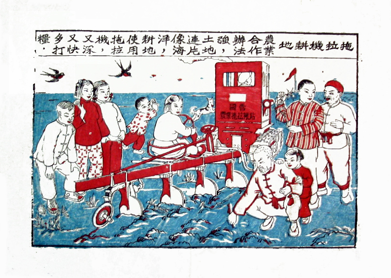 50年代山东杨家埠年画《拖拉机耕地》