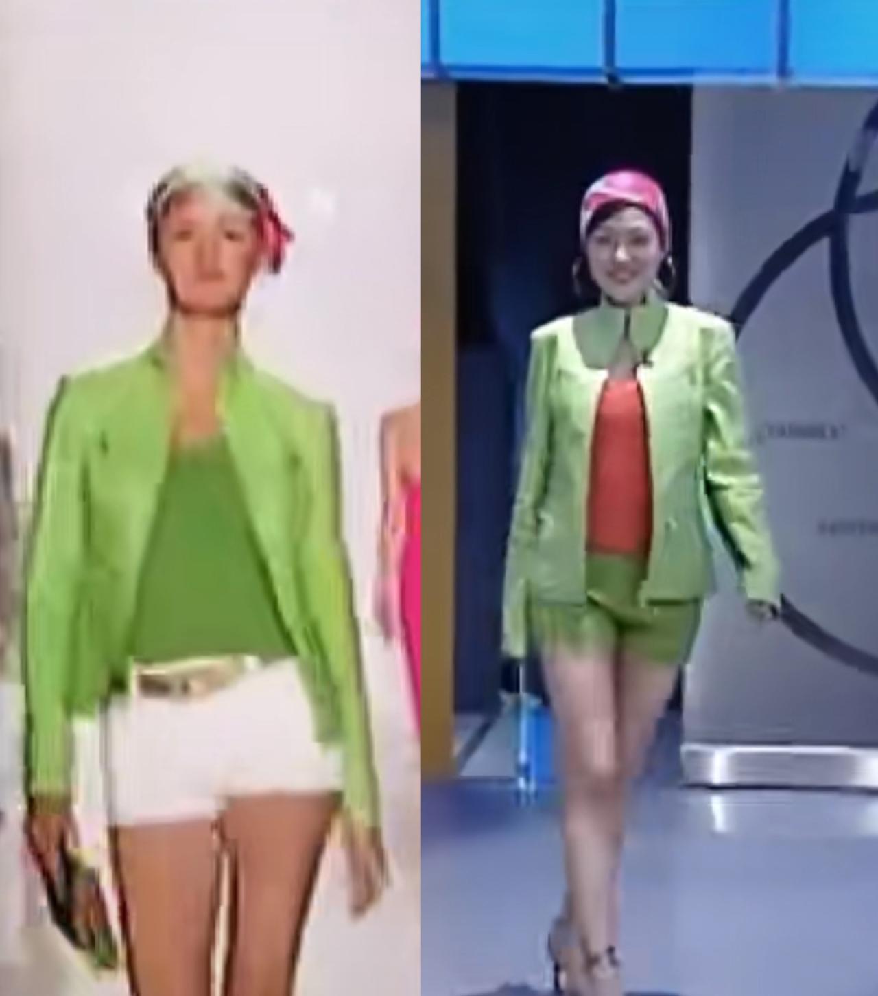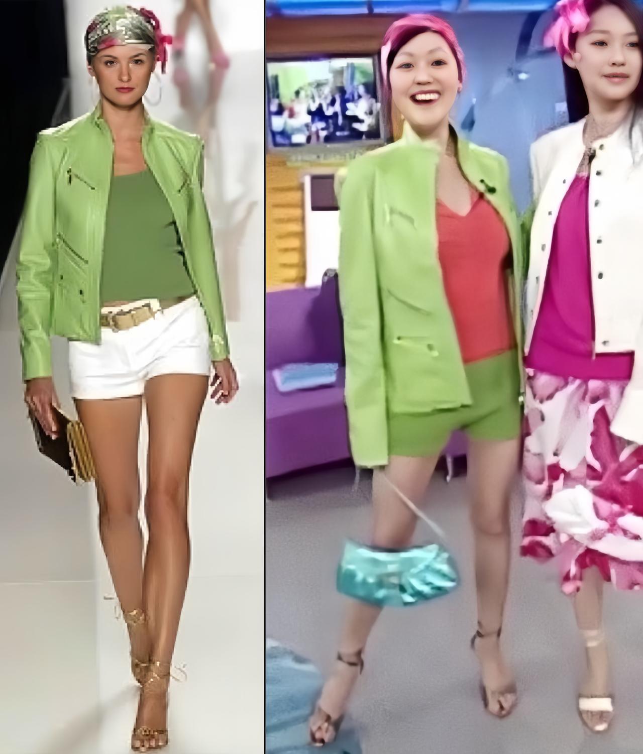 大S单是穿衣打扮的敏锐度都比小S更优秀,很多人都说,大S和小S当年真的特别时尚。放到现在再回头看,会发现大S当年其实是在借鉴世界超模的穿搭思路,尤其是舞台造型,跟国际潮流特别贴近。 看得出来大S对色彩很敏感,她不是生硬照搬模特的整套穿搭,而是提取模特身上的图案和元素,再自己改造款式,鞋子、外套都是她重新搭配过的,整体颜色协调又舒服,气质特别高级,妥妥的时尚感女星。 再看小S,同样是模仿超模造型,也自己改了颜色搭配。在当年看可能还不错,但以现在的眼光回头看,颜色搭配会显得有点杂乱、繁琐。所以很多人都说,同款造型模特穿到现在都不过时,可小S穿起来就有点过时、甚至有点土气。 只能说,模特毕竟是模特,身高气场摆在那里,身高不够高的小S再怎么模仿,气质和效果还是差了一截,哪怕头饰花丝巾扎一样的也不行。
