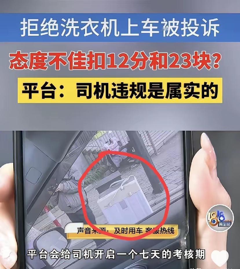 “太难了!”浙江杭州,一女子是网约车司机,她接到订单,发现乘客要带一台洗衣机,可后备箱放不下,女子要乘客取消订单,建议他找货拉拉,不料,乘客取消订单并把她投诉了,说她服务态度不佳,女子被罚23元扣12分,女子火冒三丈,找平台理论,非要平台还给她23元: 钱不多,咽不下这口气! 跑过网约车的人都懂,这份委屈真的能戳到心窝子。网约车本就是客运资质,拉人是合规本分,拉洗衣机这种大件家电,不光后备箱塞不下,硬装还会刮蹭车身,真被运管查到,违规载货的罚单还要司机自己扛。女子建议换货运平台,是最理性的处理,既没耽误乘客事,也没违规操作,怎么看都和“服务态度差”扯不上关系。 乘客一句投诉就能定责,平台连基本的场景核实都不做,直接罚钱扣分,这波操作根本站不住脚。23块钱买不来什么,可那是司机起早贪黑、在车流里抢单赚的血汗钱。12分的服务分扣得更冤枉,平台的分值直接挂钩接单量,分一掉,优质单接不到,一天的辛苦都可能白费。 行业里早有明确边界,网约车和货拉拉分属客运、货运两个体系,客运车严禁违规载货,2025年多部门还专门发文规范平台,要求投诉判定不能一刀切,更不能随意对司机罚款。杭州本地也推行过司乘双向评价,专门整治恶意投诉,可落到实际执行里,规则还是偏向乘客,司机的合理抗辩几乎不被采纳。 这种事不是个例,太多司机遇到过乘客带超大行李、搬家物件,按规则提醒就被投诉。平台只盯着乘客满意度,忽略司机的运营边界和合法权益,看似留住了用户,实则寒了千万一线司机的心。 女子咬死要讨回23元,不是斤斤计较,是在争一个从业者的公道。服务可以贴心,但不能无底线退让;规则可以严格,但不能只约束一方。 各位读者你们怎么看?欢迎在评论区讨论。
