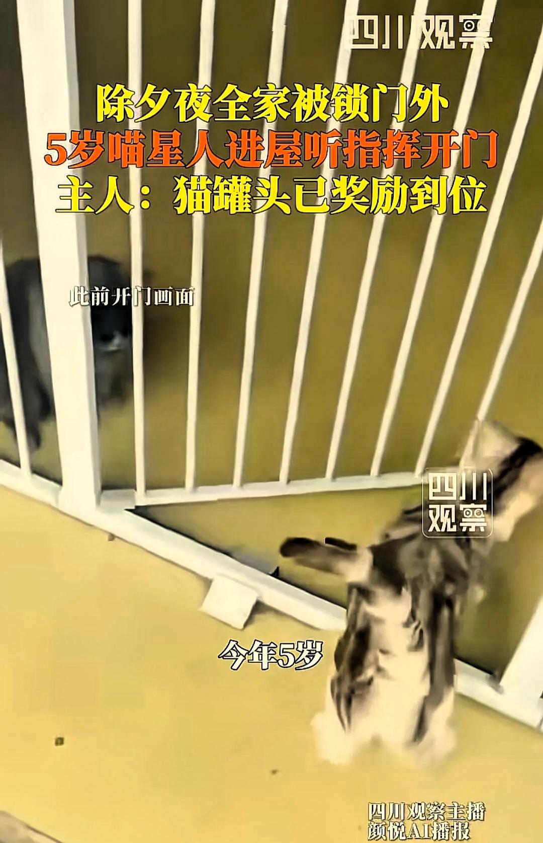 “立大功了!”湖北宜昌,除夕夜全家准备出门吃年夜饭,走到半路才想起有东西没拿,等赶回门口准备开门时,才发现钥匙被落在了家里。 一家五口人,谁都以为对方带了钥匙,结果全都没带。大过年的,开锁师傅大多已经放假,就算想花钱找人帮忙,一时间也找不到人。几个人站在楼道里,一时不知道该怎么办,原本开心的过节气氛,也变得有些着急。 就在大家一筹莫展的时候,家里养了五年的小猫刚好从外面回来。主人看着猫咪,突然想到一个办法:猫咪平时经常从小窗户进出家里,也许可以让它进屋帮忙把门打开。 于是,家人把小猫从窗户送进屋内,在门外轻声引导它。本来只是抱着试一试的想法,没想到猫咪真的很配合。没过几分钟,门内就传来了“咔哒”一声,门锁被成功打开。 看到门打开的那一刻,全家人都松了一口气,也觉得又暖心又好笑。养了五年的小猫,在关键时刻帮了全家一个大忙。 主人说,这只猫平时在家就会自己开门,只是没想到会在这么紧急的时候派上用场。事后,家里也特意给猫咪奖励了猫罐头,算是对这位“小功臣”的感谢。 很多人都说猫咪高冷、不听话,但真正长期陪伴在身边的宠物,其实早就和家人有了无声的默契。它们不会说话,却能在不经意间,用自己的方式给人带来惊喜和帮助。 这件事虽然不大,却让人觉得格外温暖。小动物或许不能帮我们做太多大事,可在生活的某个小瞬间,它们的存在,就足以让人觉得温柔又安心。