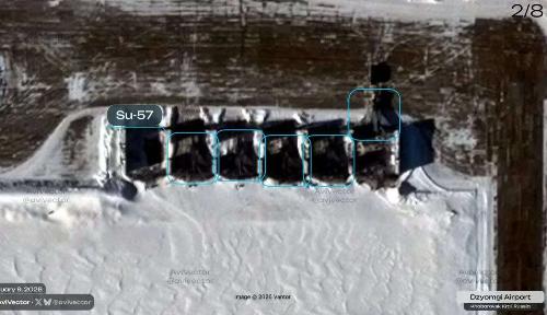 俄罗斯在中国边境附近集结苏-57隐身战机!据AviVector项目发布的卫星图像显示,俄军在距离黑龙江,大约280公里的哈巴罗夫斯克州杰约姆吉空军基地,集中了至少15架苏57隐身战机。 苏-57是俄罗斯目前最先进的五代隐身战机,也是俄罗斯空天军手里的“王牌装备”,这款战机从上世纪90年代就开始研发,具备超音速巡航、高度隐形和超级机动性等诸多优势,原本是用来取代苏-27、米格-29等老旧机型,撑起俄罗斯空天军的空中优势的。 但大家可能不知道,苏-57的量产之路一直不太顺利,受西方全面制裁的影响,负责生产它的共青城航空生产联合体,在电子元件、航空钛合金材料进口以及先进机床等方面,都面临着供应链中断的困扰,导致这款战机的产量一直上不去。 有专业分析人士给出判断,目前整个俄罗斯空天军,真正能够投入实战、形成战斗力的苏-57隐身战机,总数也才只有20到25架。 也就是说,俄军这次直接把15架苏-57集中部署到杰约姆吉空军基地,相当于把自己空天军最核心、最精锐的隐身战机主力力量,几乎都投放到了中俄边境附近,这样大规模、高密度的部署,确实显得格外引人注目。 可能有人会疑惑,俄罗斯为啥要把这么珍贵的“王牌战机”,集中部署在靠近中国的边境区域,其实结合当下的局势和俄军的实际需求,就能明白这一动作的背后逻辑,而且这一部署动作,也得到了西方卫星图像的进一步证实,绝非空穴来风。 苏-57作为俄罗斯空天军的核心资产,每一架都造价高昂,而且数量稀少,一旦出现损失,不仅会重创俄军的空中战术体系,更会直接削弱俄罗斯的战略优势,所以俄军必须把这些“宝贝战机”转移到相对安全的区域。 杰约姆吉空军基地位于俄罗斯远东地区,距离俄乌战场所在的西部边境,直线距离超过9000公里,这里远离战火纷扰,安全性远超俄罗斯中西部的空军基地,把苏-57部署到这里,无疑是最聪明、最务实的选择。 除此之外,杰约姆吉空军基地还有一个得天独厚的优势,它距离生产苏-57的共青城航空生产联合体,直线距离只有几公里,这样的地理位置,给苏-57的后续维护、试飞和验收,都带来了极大的便利。 要知道,2026年初,俄罗斯刚刚确定了新一批升级版苏-57的技术标准,正在全力推动这款战机的大规模量产,而新交付的苏-57,完全可以直接进驻杰约姆吉空军基地,在这里完成试飞、验收以及飞行员训练、技术整合等一系列工作,大大提升部署和形成战斗力的效率。 值得一提的是,这次俄军在杰约姆吉空军基地的部署,并不是只有苏-57这一款战机,卫星图像还显示,该基地同时还进驻了18架苏-35S战斗机、3架米格-31BM截击机,还有两架米-8直升机,形成了一个多机型搭配的综合性空中力量集群。 这些机型各有侧重、相互配合,苏-57负责隐身突防和空中优势争夺,苏-35S擅长近距离空战和对地打击,米格-31BM则专注于远程截击,它们搭配在一起进行训练和部署,能够形成更全面、更强大的空中作战能力。 另外,从当前的地区局势来看,俄罗斯把苏-57部署到远东的杰约姆吉空军基地,也有强化东部地区防御力量、应对周边局势变化的考虑。 综合来看,俄军这次在距离黑龙江280公里的杰约姆吉空军基地,集中部署15架苏-57隐身战机,绝非偶然,更不是针对中国的动作,而是结合自身装备现状、俄乌战争局势以及地区安全形势,做出的理性部署。 这一动作既体现了俄罗斯对苏-57这款核心装备的重视,也彰显了其维护自身战略安全的决心,而这样大规模的主力战机部署,也从侧面反映出,俄罗斯空天军在当前复杂局势下,正在不断调整战术布局,全力守护自己的国家利益。 毕竟对于俄罗斯来说,苏-57是撑起其空中优势的关键,把这些战机部署在最安全、最能发挥作用的区域,才能最大限度地发挥它们的战斗力,为自己的国家战略服务,这也是俄罗斯空天军当下最重要的考量之一。