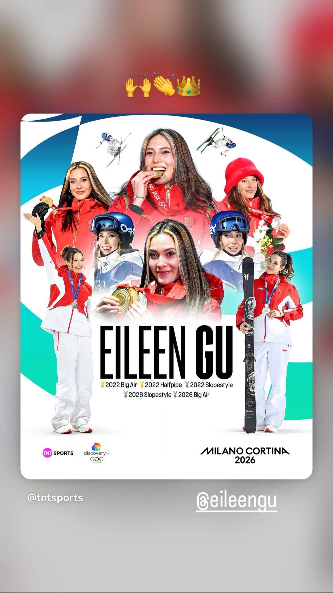 德约科维奇转发谷爱凌图片,配上膜拜、鼓掌、皇冠的emoji