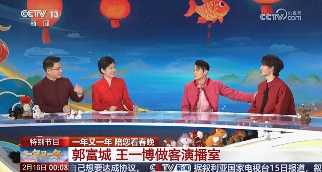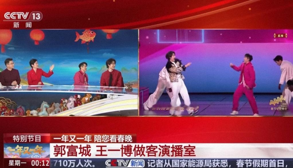 “王一博就是舞王”! 王一博和郭富城做客央视总台春晚演播室,将近20分钟的采访,台上是绝对的王者气场,台下就秒变尊重前辈又聪明乖巧的小可爱(bushi),又有着令人心折的专业态度专业实力和不忘初心的坚定。 郭富城:他就是舞王,在我的心里他就是。今年他29岁,一定是经历很多的训练,而且有天分。 王一博:我们的舞台都是隔空排练,13号才一起合练了一次。开始前有一种特别的感受,那个门慢慢的合上更像我要观看郭老师的感觉,就感觉天王要出场的感觉[马思纯的微笑] 王一博还自己说:今晚我的鞋子也滑了一下。 主持人说:看不出来,一博不说我们根本看不出来。 郭富城说:但是你扎实的功底顶住了! 王一博“天地无察,但我在乎”的含金量还在上升,他自己说没人看出来那个已经被现场完美化解的滑那一下,可是王一博依然坦坦荡荡说出来。 自信强大坦荡,而扎实过硬的舞蹈功底和丰富的舞台经验,让王一博能够让任何意外在表演中游刃有余临危不乱的化解于无形。 过硬的专业实力,过硬的人品,聪明睿智又谦逊低调,难怪合作的前辈都是满眼的欣赏和喜爱。 王一博 王一博郭富城炸场