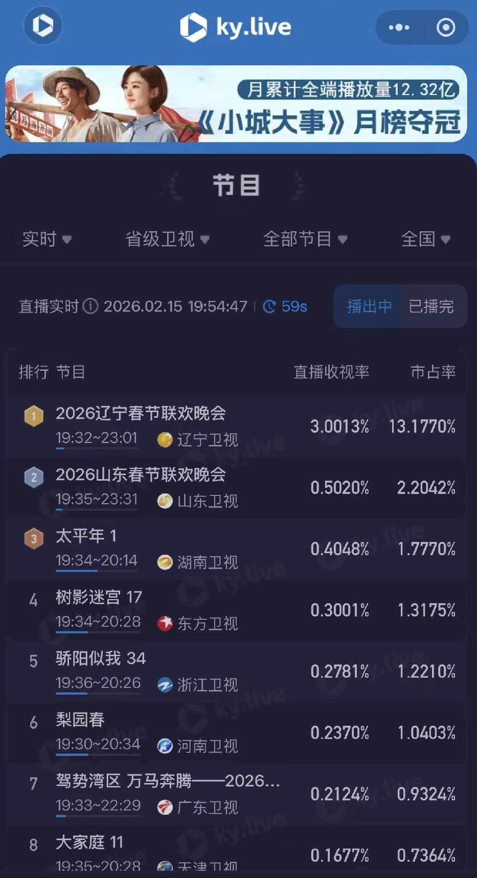 春节期间,各电视台收视率,尤其春晚收视率。