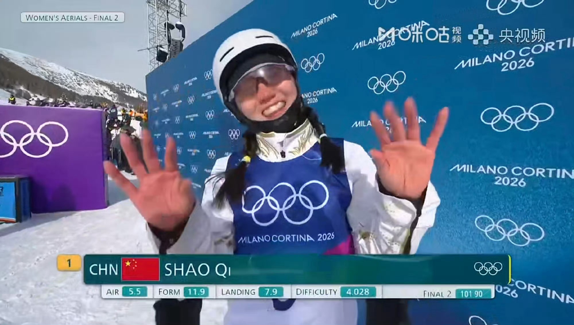 开了个好头!决赛决胜轮中国选手邵琪101.90分!(咪咕体育) #自由式滑雪女子空中技巧决赛#