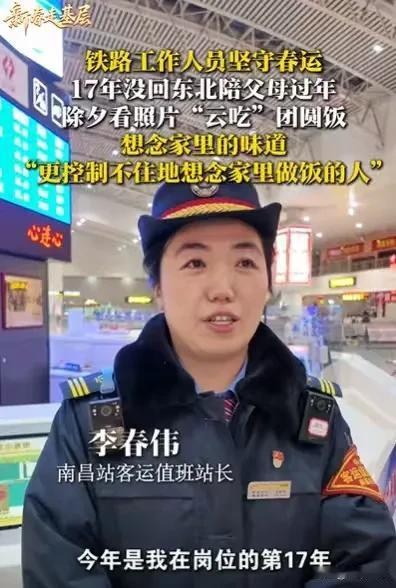 江西南昌,女子在铁路工作,有17年的春节,都没有回家,除夕夜,她正在值班,她突然想家,想家里的味道,更想念家中做年夜饭的人,她一想家就哽咽了,17年没有回家过年,她的内心十分不是滋味,有人却说,他愿意拿10万,让女子和他儿子交换工作。 17年了,这是女子在岗位上,坚守的第17个年头,17年的春节,17年的坚守,让她早已忘记,在家过年到底是什么滋味。 这17年来,自从她来到铁路的岗位上工作,每年的春节,为了保证旅客的安全,为了保证旅客的团圆,她一直没有放假回家过年。 每年的春节,都是她最忙的时候,这个时候比平常时的工作还要累,春节前的车站,人头攒动,摩肩接踵。 这个时候,铁路车站的工作人员,都得在自己的岗位上,兢兢业业地工作,保持车站的秩序,让车站的旅客们,顺利上车,顺利下车。 这是女子在春节的工作,每一年,春节前的旅客们,都是一样的,他们步履匆匆,有人赶上车回家,有人下车赶回家。 他们是一样的心情,都是着急着回家,女子和同事们也是一样的心情,那就是让拥挤的车站有序地进行。 他们或是帮旅客们指指方向,或是帮旅客们解决当时遇到的问题,他们比平常更累,比平常更努力。 为了每一年的春节,都能顺利完成任务,女子一直坚守在自己的岗位上。 坚守在岗位上的她,便一年又一年地失去了和父母,和家人团聚的机会,17年了,不管时光如何变迁,她依然记得家中年的味道。 可她17年没有在家过年了,这17年,她不知道有多么得想家,想家中年夜饭的味道,更想念做年夜饭的人。 这是17年来,她的父母早已经习惯了,从来不会在这个时候问她,什么时候回家过年。 他们知道,问了也没有用,春节前后,本来就是铁路工作人员最忙的时候,他们需要坚守在岗位上。 这是女子的职责,女子很清楚,但17年的时间,17年的春节,她都没有好好和家人度过,她一想起这个,眼眶里总是满含泪水。 她总会在工作的某一个瞬间,看着旅客们,匆匆忙忙赶回家和家人团聚,她就特别地想念家。 17年的坚守,女子说,只要旅客们是安全的,只要旅客们能够回家和家人团聚,他们坚守在岗位上,就是值得的。 17年,人生能有多少个17年,面对女子的坚守,很多人都很敬佩,过年,在我们的人生当中,占据非常重的分量,女子却17年没有和家人过年,实在不是常人能忍受的。 面对女子的委屈,很多人却羡慕她的坚守,羡慕她的工作,羡慕她春节前后上班,能够有三倍工资,别人回家是团聚了,却花钱了。 女子在岗位上坚守,拿着三倍工资,虽然没有和家人团聚,却拿到应有的报酬了,这样的付出,很多人觉得是值得的。 很多人还很喜欢女子的这个岗位,17年的坚守,不能回家过年,却有很多人能够接受的。 甚至有人说,愿意拿出10万,让女子和儿子换工作,当然这只是开玩笑,这是不可能的。 但那么多人愿意和女子换工作,就证明一件事情,女子的工作是有意义,女子的工作应该收入也是不低的,所以大家才会羡慕她的工作,希望和她调换工作。 调换工作,只能说是开玩笑而已,他们所想表达的,不过就是羡慕女子的工作,即使春节要坚守在岗位上,他们觉得有这一份工作,也是值得的。 不少人的收入并不高,春节前后上班,属于法定假日,是可以有三倍收入的。 《劳动法》第44条规定:法定休假日安排劳动者工作的,支付不低于工资的百分之三百的工资报酬。 面对三倍收入,其实很多人都是能够接受这样的工作的。 那么你能接受这样的工作吗?