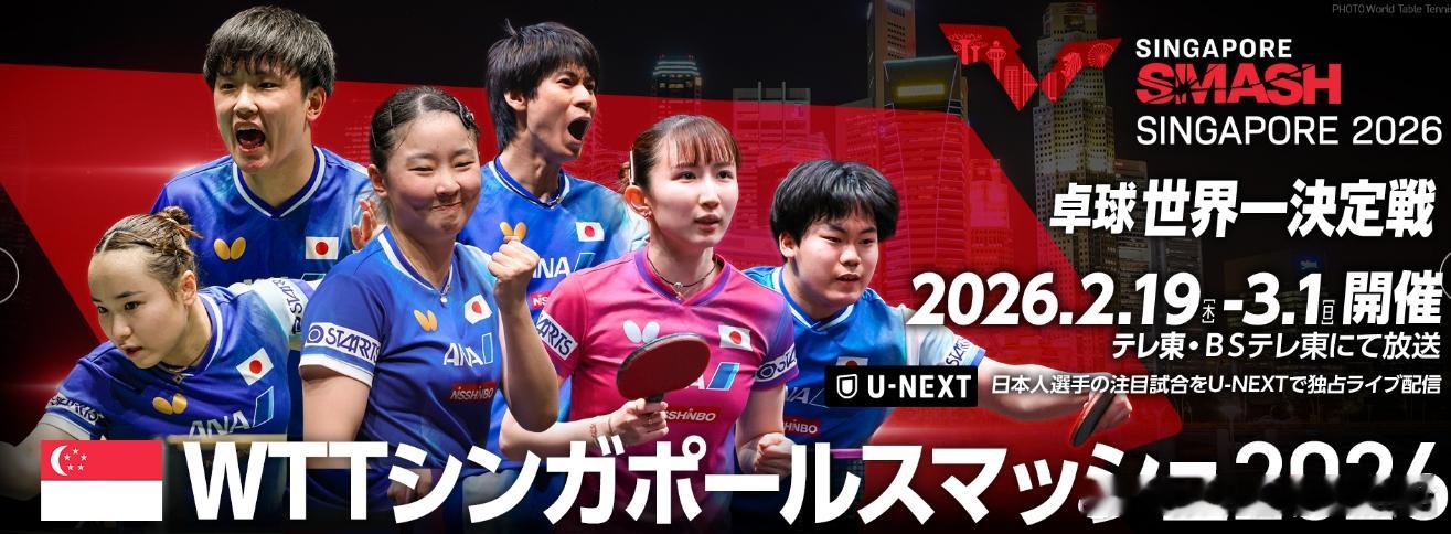 wtt新加坡大满贯2026张本智和东电和U-NEXT宣传图。