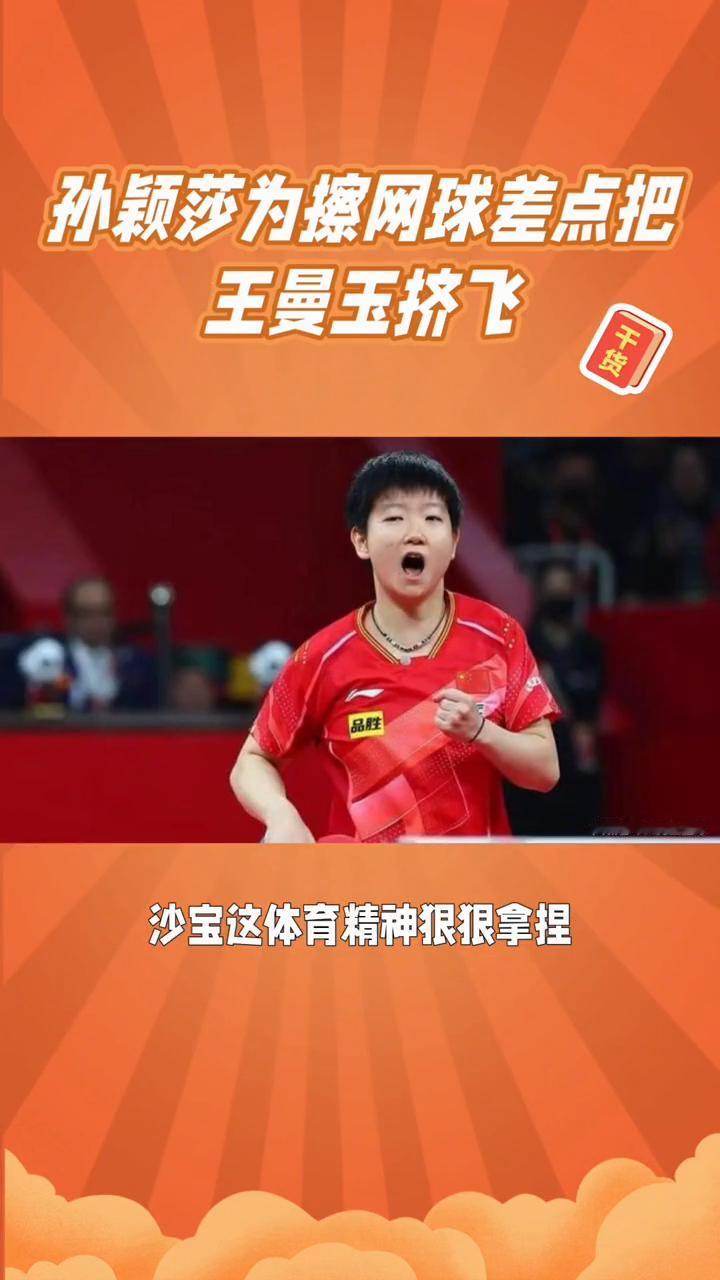 孙颖莎为擦网球差点把王曼玉挤飞。 家人们,wtt瑞典站女双赛场上演名场面,孙颖莎为就擦网球极限扑救差点把王曼玉挤飞,这拼命又搞笑的瞬间让全场爆笑加鼓掌。沙宝这体育精神狠狠拿捏,赛场有竞技也有欢乐,这才是乒乓该有的样子,必须给沙玉组合打call。