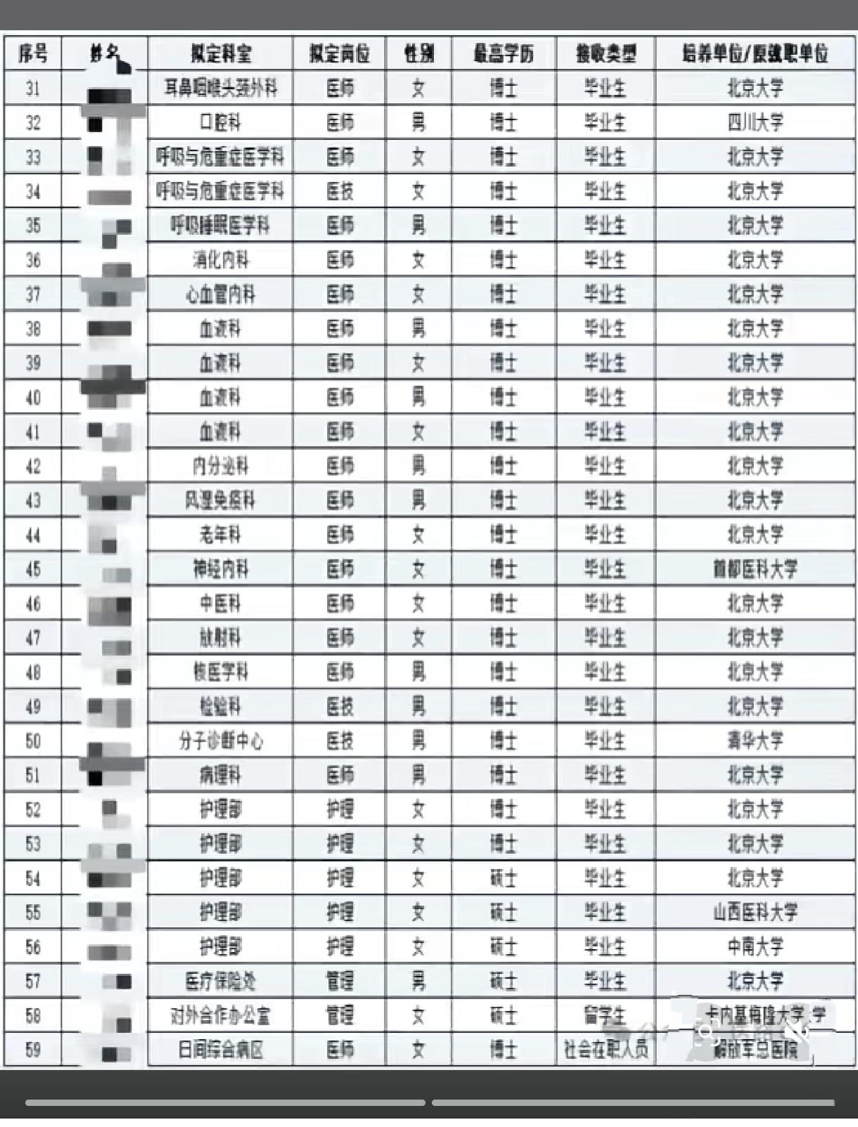 北大人民医院录取的都是什么样的人?几乎全员博士,这么高的新晋人员学历密度令人头皮