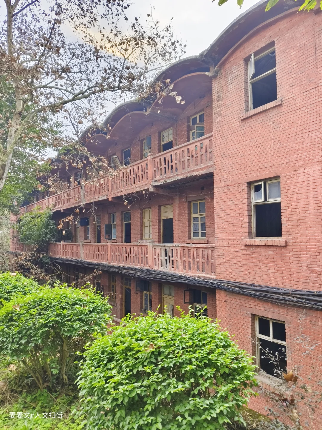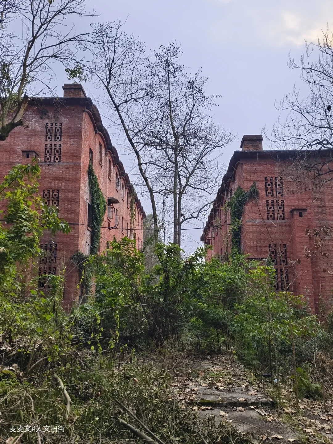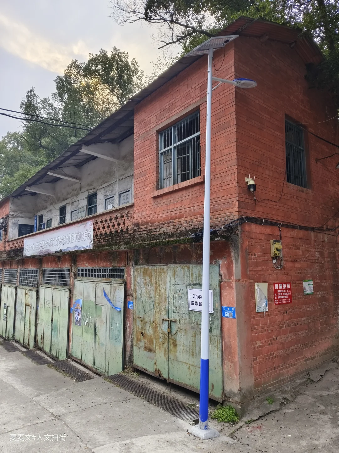 如今的江钢家属区,一半是人间烟火,一半是岁月荒芜。那些苏式风格的红砖宿舍楼,是三线建设的典型印记。有的家属楼里还住着老职工,门口挂着红灯笼,窗台上摆着盆栽,生活气息依旧。有的则被藤蔓和杂草吞噬,门窗洞开,像被遗忘的巨兽,诉说着往日的辉煌。
