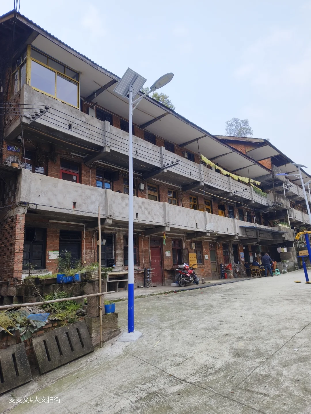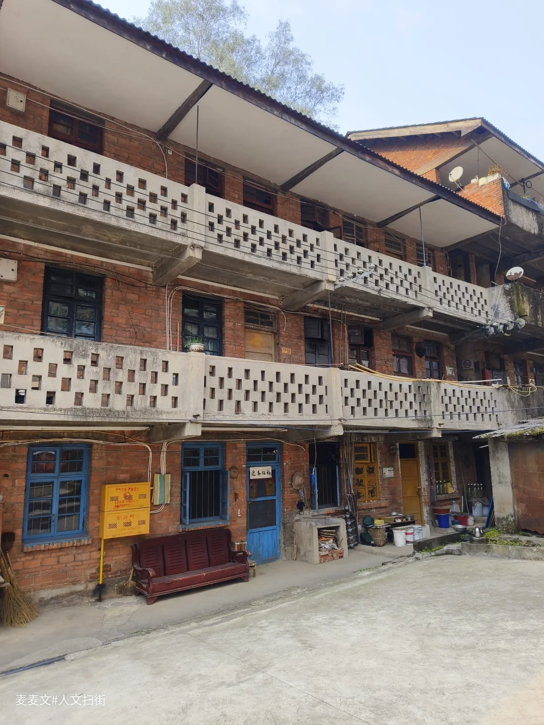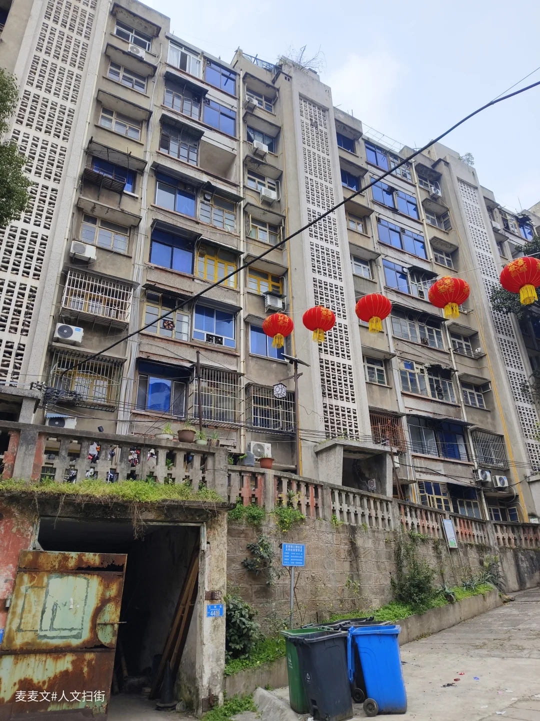 如今的江钢家属区,一半是人间烟火,一半是岁月荒芜。那些苏式风格的红砖宿舍楼,是三线建设的典型印记。有的家属楼里还住着老职工,门口挂着红灯笼,窗台上摆着盆栽,生活气息依旧。有的则被藤蔓和杂草吞噬,门窗洞开,像被遗忘的巨兽,诉说着往日的辉煌。