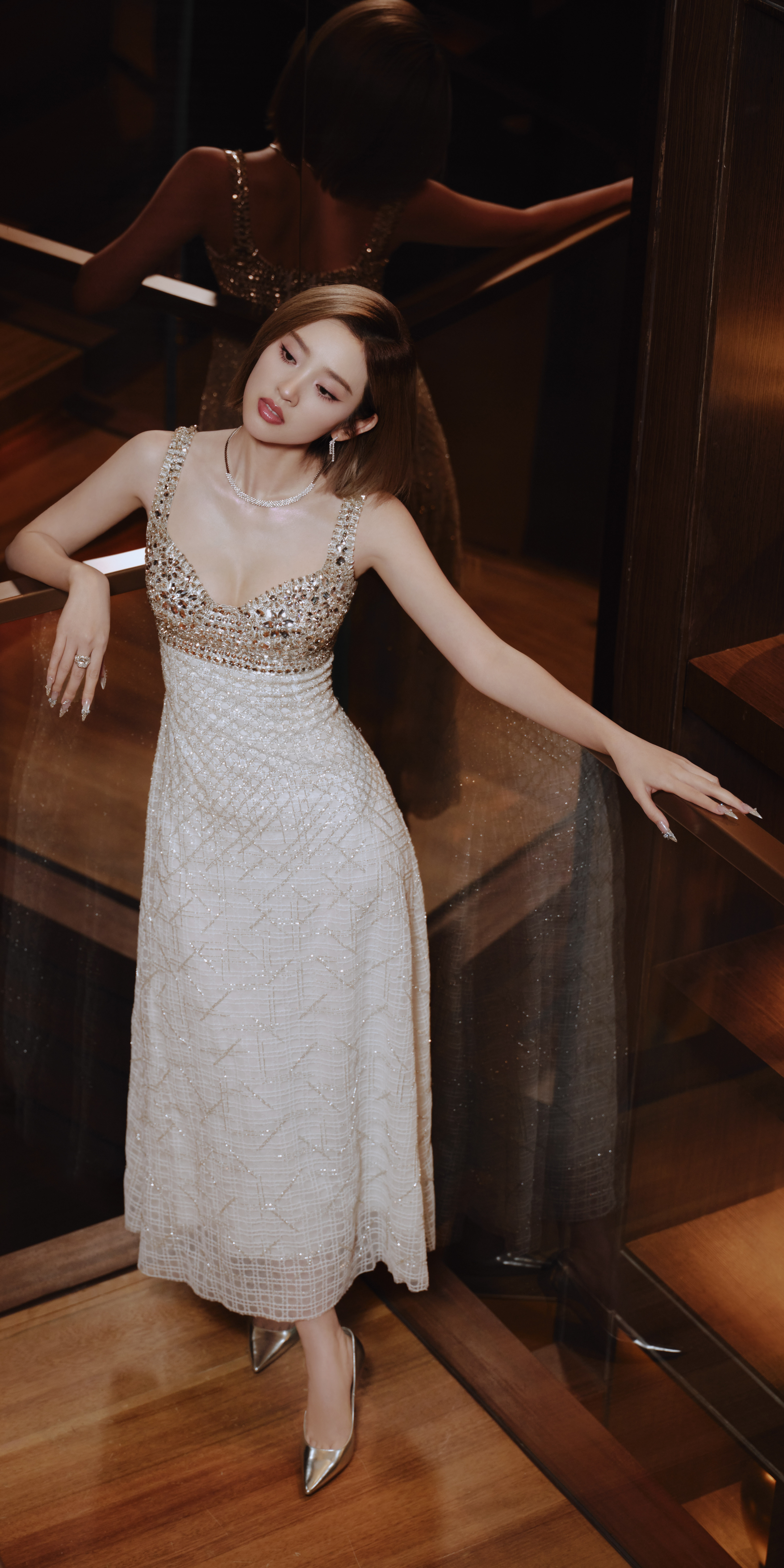 唐艺昕壁纸:银妆吊带,小蛮腰吸睛。唐艺昕