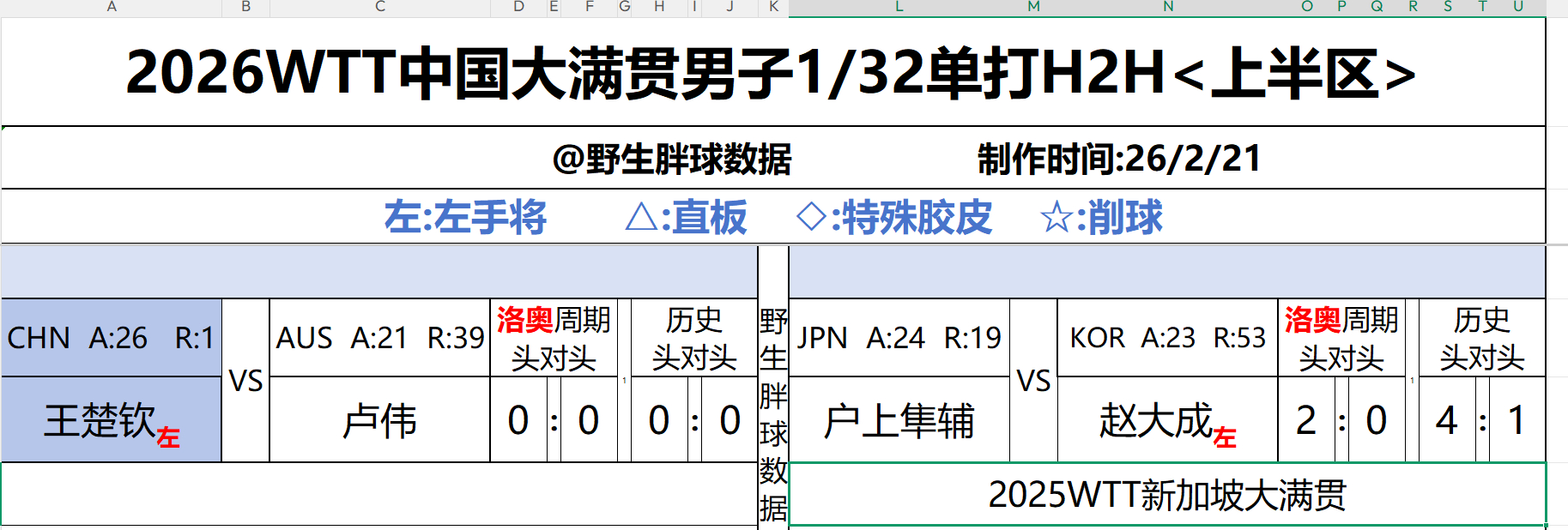 乒乓球胖球数据