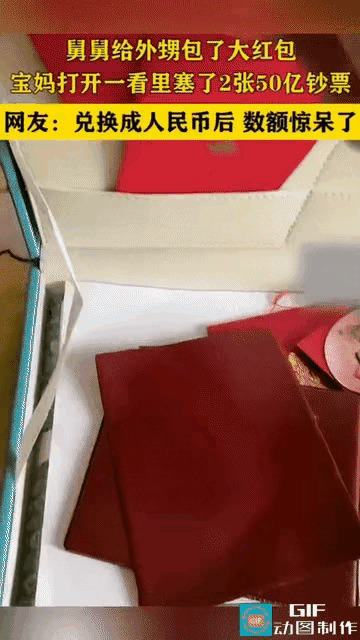 网友震惊了:一位妈妈拆舅舅给孩子的红包,里面竟然装着2张50亿面额的钱,加起来就是100亿了。女子惊呆了,谁家包红包包这么多啊,真是亿点点惊喜。她从来没见过这么大面值的钱,我们人民币最多就是100元,她不知道这钱是真是假,觉得很不可思议。 这位宝妈是一位普通网友,孩子刚满3岁,过年跟着她回娘家。 舅舅是做外贸生意的,平时出手就大方。 这次给外甥包红包,宝妈还特意跟老公说:“咱舅肯定少不了。” 结果一打开,直接愣在原地。 两张印着“5000000000”的钞票,红得晃眼。 她手都抖了,赶紧拍了视频发家族群。 群里瞬间炸了,有人说“这是纪念钞吧”,有人说“舅舅发财了?” 还有人调侃:“这红包,能直接买套房了。” 我刷到这个视频的时候,差点把手里的奶茶喷出来。 想起我小时候,我舅给我包红包,最多就是50块。 还得被我妈收走,说“帮你存着”。 现在倒好,直接“50亿”起步。 这差距,比我和马云的差距还大。 有网友说:“这舅舅是懂惊喜的,直接给孩子整成‘百亿宝宝’。” 也有人泼冷水:“别高兴太早,这种钱多半是花不出去的。” 还有人分享自己的经历:“我老公他叔,过年给孩子包过‘金箔红包’,看着贵,其实就是纸。” 大家的心情都一样: 既羡慕这“排面”,又怕这“惊喜”是个坑。 宝妈越想越慌,赶紧找了懂行的朋友问。 朋友一看照片,直接笑出了声: “这是津巴布韦币,早已经退出流通了。” 原来,这是津巴布韦在2009年发行的大面额纸币。 当时通货膨胀严重,货币大幅贬值。 现在它主要作为收藏品存在,市场价值不高。 换算成人民币,这两张“50亿”,加起来也就几毛钱。 宝妈听完,哭笑不得。 她把这事跟舅舅一说,舅舅也乐了: “我就是觉得好玩,给孩子图个吉利。” “百亿宝宝”的梦,碎得比肥皂泡还快。 其实啊,过年包红包,图的就是个心意。 钱多钱少不重要,重要的是那份爱。 像我舅,虽然只给50块,但每次都塞我兜里,说“买糖吃”。 那时候的50块,比现在的50亿还甜。 别被那些花里胡哨的“大场面”骗了。 真正的爱,从来都不是用数字衡量的。 你过年收过最离谱的红包是什么? 是“巨款”还是“惊喜”? 评论区聊聊,让我开开眼呗。