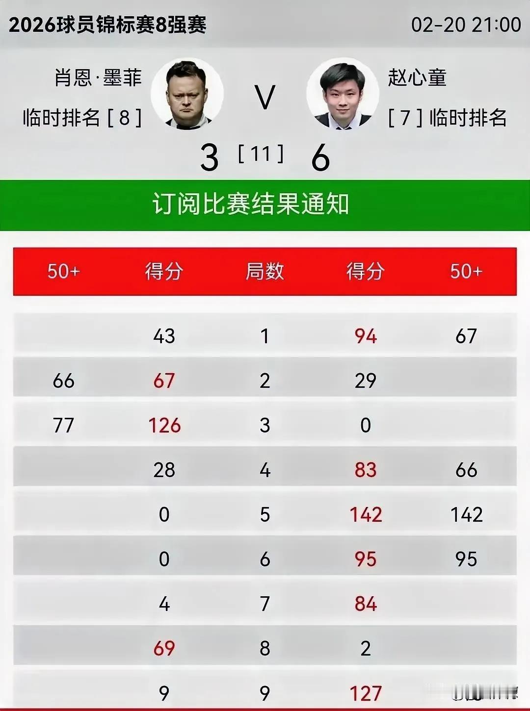 你知道赵公子6-3击溃墨菲时说了什么吗?他说“昨天我看到马克威廉姆斯icon打出单杆最高分141分,我想我在打出一杆142怎么样”。 他这话什么意思?我想最难受的就是墨菲了,在他看来赵心童icon根本就没把自己放眼里,还在自己面前刷存在感。 马克威廉姆斯虽然被淘汰,在与特鲁姆普的对阵中打出单杆143分。🤦墨菲墨水乱飞了,是技不如人,还说不是自己真正的水平,输了就是输了没那么多心里不平衡,谁也不是常胜将军。 但又一次有人在面对我时打出了超水平的发挥,……墨大嘴在说这句话的时候,明显就是说对方因为忽然超水平发挥了,才把他打败的,正常情况下他赵心童是无法战胜他墨非的!这家伙真的是死鸭子嘴硬啊。就算顺你的意思说吧,为什么你又让别人在面对你的时候能超水平发挥,然后战胜你呢,那还不是你自己的能力问题。😏 艾伦老油条+老江湖,想赢他会很难,需要一场恶仗。 赵公子防守会失误,但你进攻敢给机会吗?赵公子就是攻强守弱,但是状态好了就是准度不讲理,信心爆棚。越大越有。 艾伦的水平和墨菲相比还是差点段位,赵心童击败状态正常+运气不错的墨菲真的是超级硬实力的表现。 艾伦对中国球员的方法就是心理战,想用疯狂做斯诺克障碍球来击溃对手的心态。包括希金斯,塞尔比,特鲁姆普,罗泊逊也是这个方法。 四杆80+两杆过百!太牛逼了。一杆制胜的能力以及极限上手的能力超强👍世界第一排名可期。 偶然性较大短局制不适合赵心童、其随心所欲球风也让短局赛充满不确定性;只有长局制才能发挥正常水准,流畅击球使他单局比其他球员费神少,时间越长体力精力优势越明显、;5进大赛决赛100%长局胜率即证明。 赵心童只为世锦赛、各大赛长局决赛而生。 赵心童1:0领先,第二局是送给墨菲的,防守。把白球塞到黄球后面,结果漏球了 。墨菲一杆清台1:1平紧接着墨菲又赢一局2:1领先,那杆防守。白球应当贴底库的咖啡球万无一失,那杆防守实际是丢了两局,好危险。 台球比赛也必须要争气,随着我国全方面崛起,无论方方面面中国人一定挺起腰杆,希望我们独苗赵公子取得好成绩,争取拿下冠军,为国争光。 支持赵心童,从丁俊晖手里接过中国斯诺克领军旗帜,打败英国佬,振中华雄威!