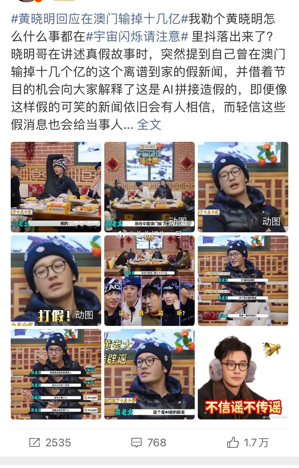 这次在节目里公开调侃式辟谣,既轻松化解尴尬,也给大家提了醒:AI时代,造谣成本更低,理性吃瓜、不信谣不传谣才是正道。黄晓明回应在澳门输掉十几亿
