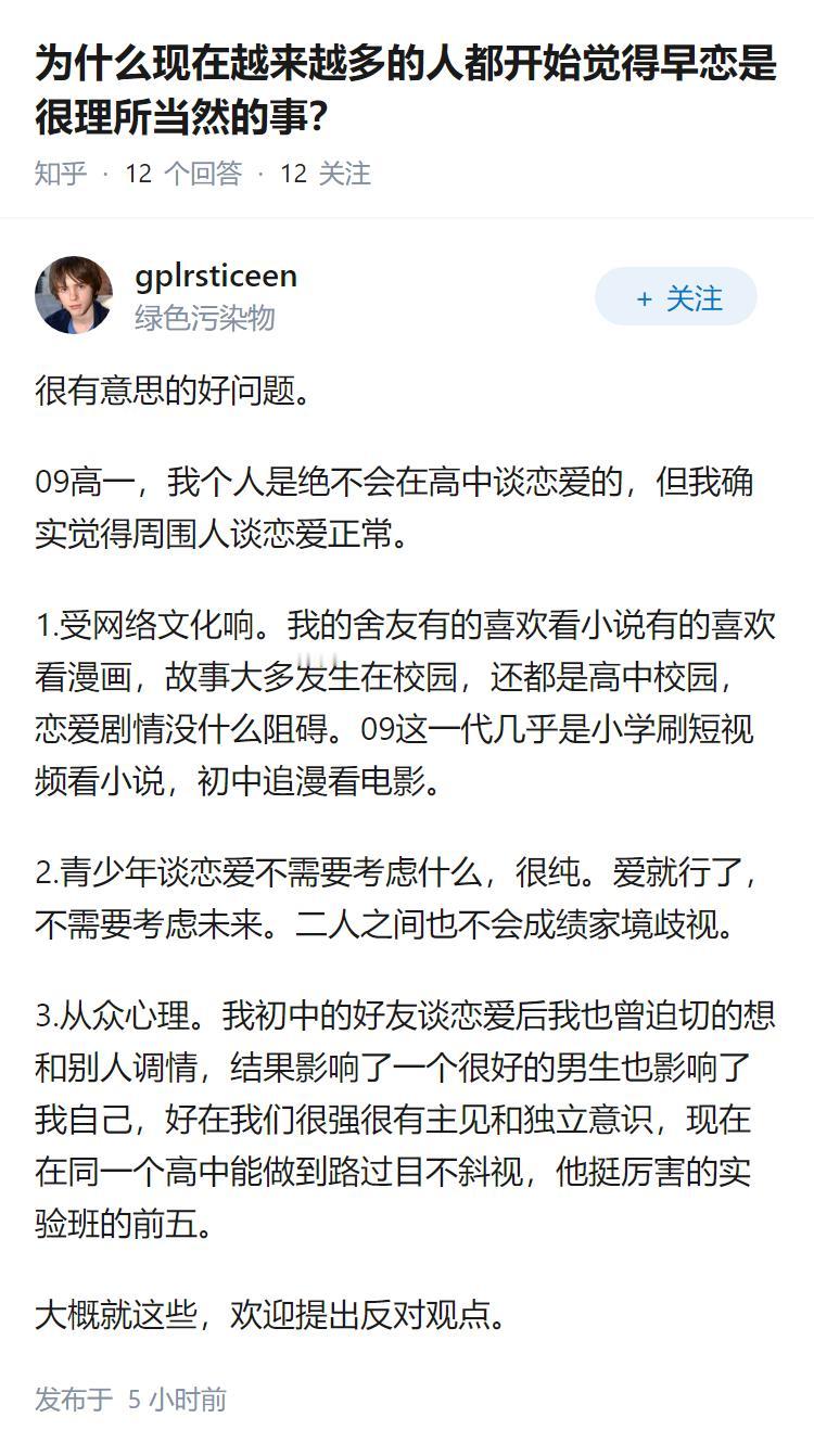 为什么现在越来越多的人都开始觉得早恋是很理所当然的事?