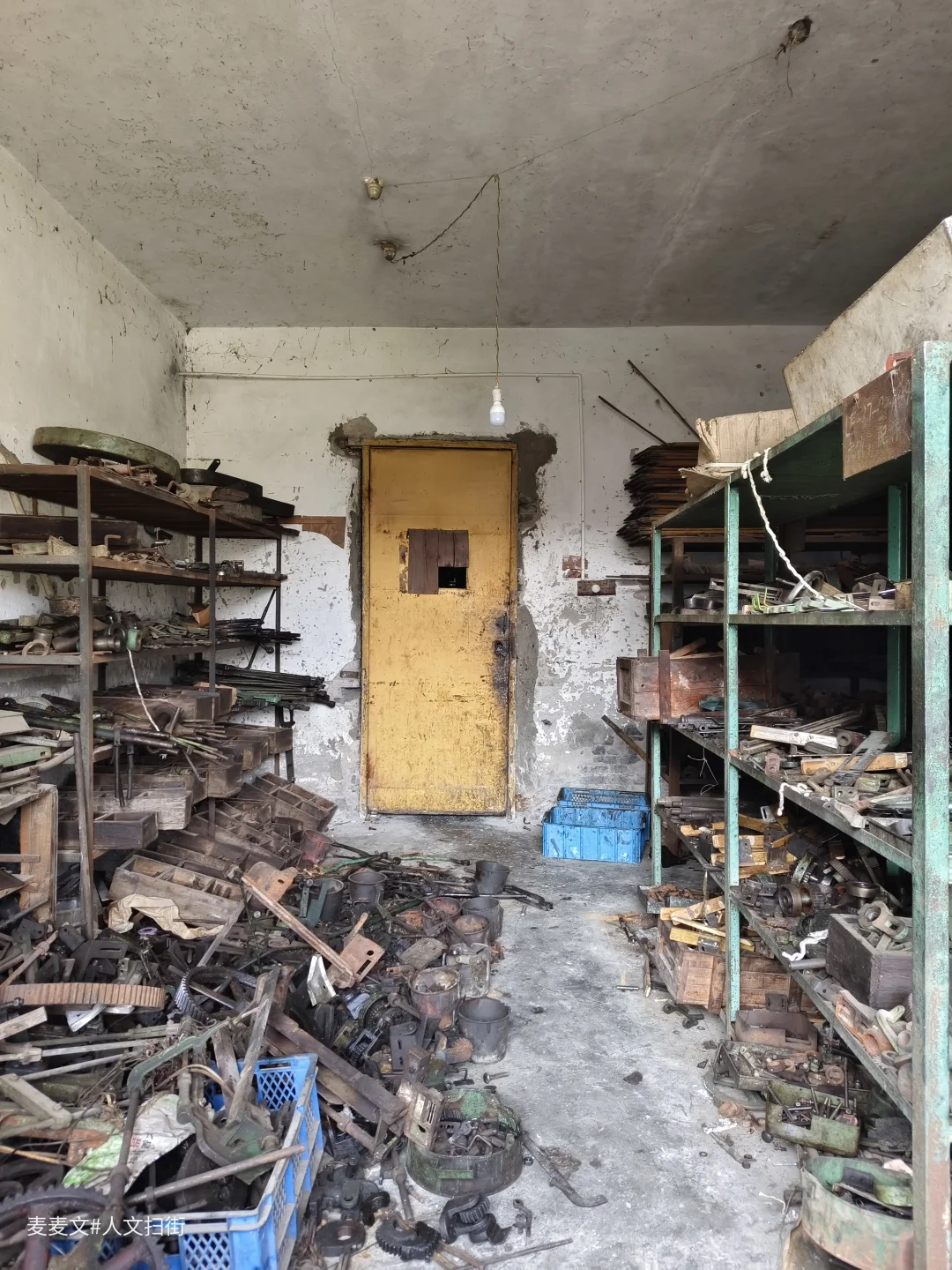 如今,那些曾经创造历史的机器被拆解在角落,零件和齿轮随意堆放,仿佛在等待着下一次的唤醒。而那些斑驳的墙面、褪色的标语和生锈的设备,共同构成了一部立体的工业史诗。