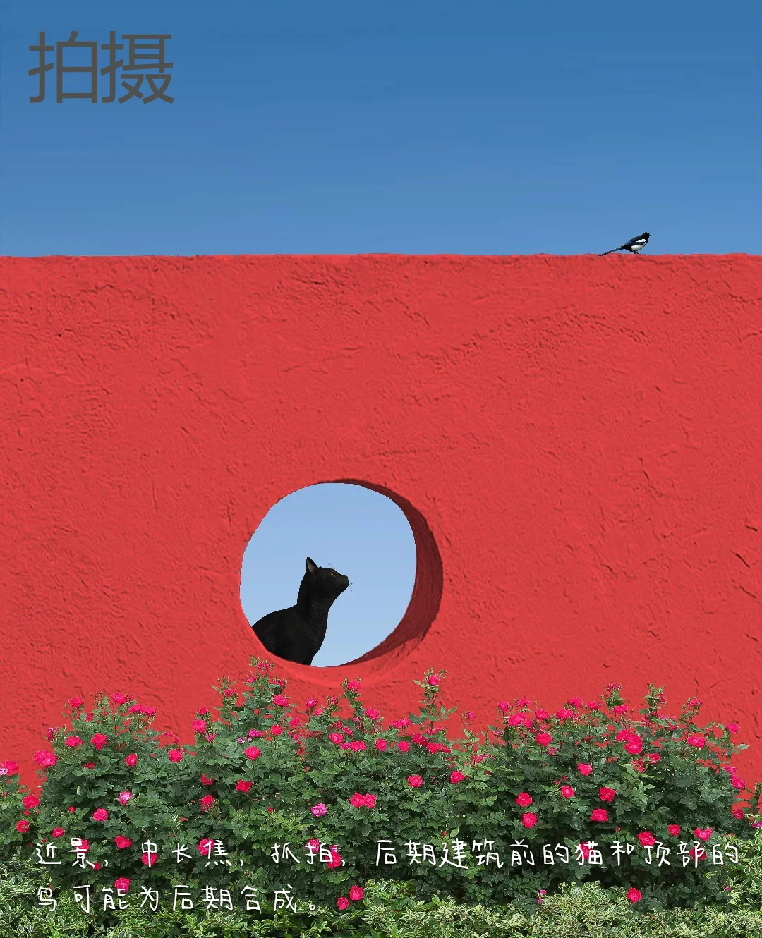5.拍摄:近景,中长焦,抓拍,后期建筑前的猫和顶部的鸟可能为后期合成。