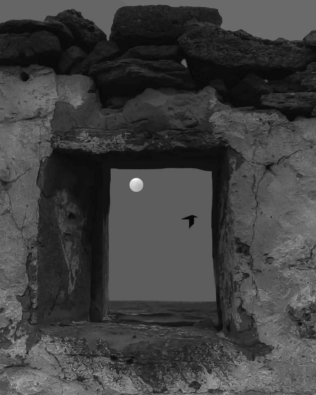 2.光线::左侧光,硬光,光线从左侧照亮画面,且在画面中形成明暗关系(画面中心的墙体起到突出的)使画面具有层次和立体感。