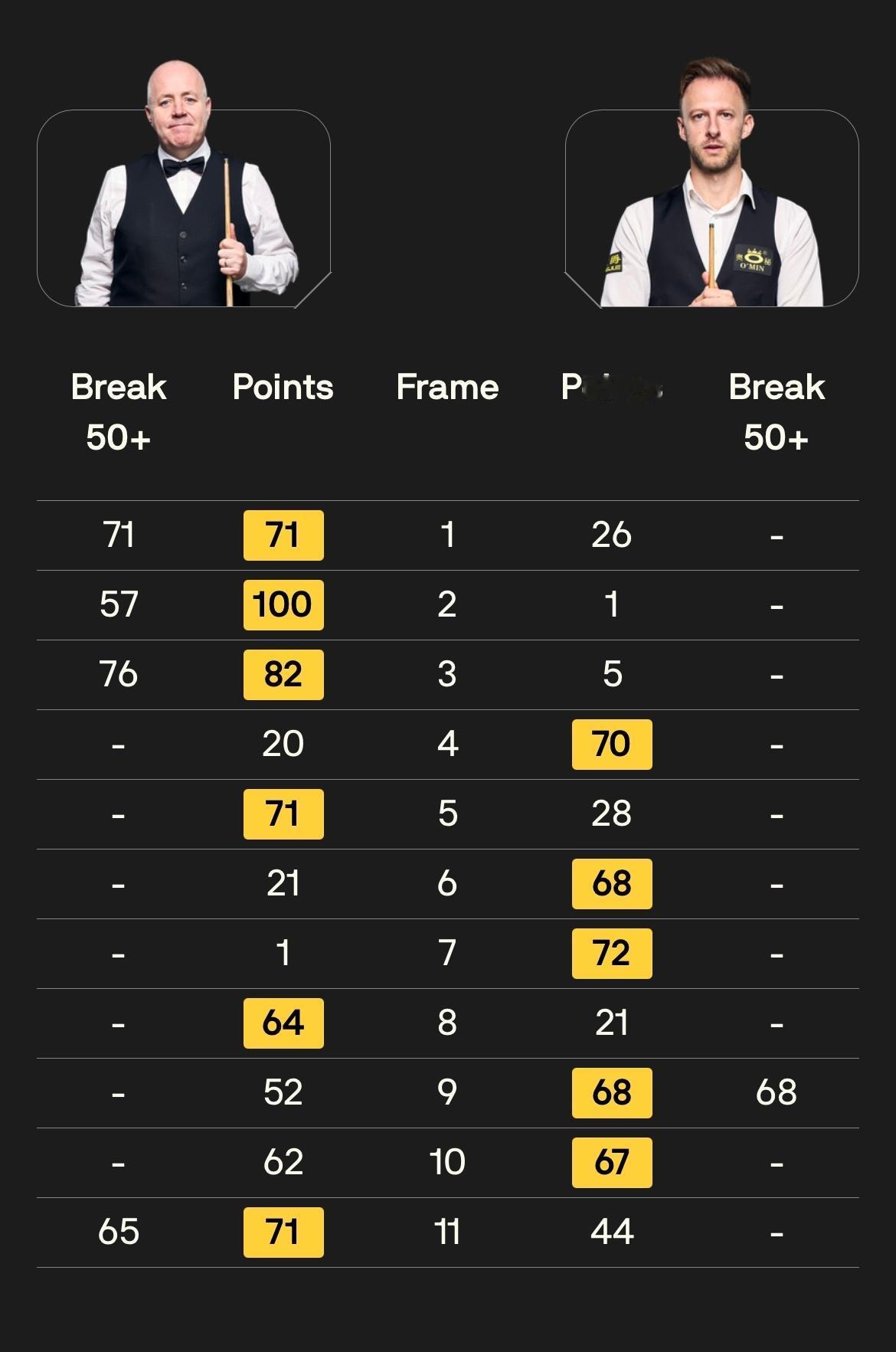 是人就会犯错,世界第一也不例外。第一场球员锦标赛半决赛的结局真是太戏剧性了。 希金斯开局3-1领先特鲁姆普。5-3拿到赛点后突然大量犯错,超分球屡屡打丢。小特抓住机会挽救两个赛点5-5打平进入决胜局。然而,小特在决胜局的一个简单失误葬送了一晚的努力。最终希金斯6-5戏剧性赢下比赛。 令人难以置信的是,特鲁姆普本赛季打了8场决胜局,却全部输掉了。他上一次赢得决胜局,还是2024年英锦赛对阵希金斯。 这是巫师本赛季打进的第3个决赛,国锦赛输给吴宜泽,大师赛决赛输给囧哥。