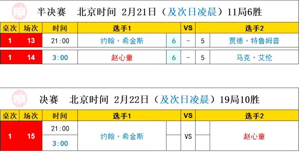 今年的球员锦标赛决赛双方数据惊人的同步,只不过赵心童晋级之路更凶险,两次落后两次逆转;希金斯一路领先最终拒绝逆转。 1、半决赛比分相同 希金斯6-5特鲁姆普(希金斯3-1领先) 赵心童6-5艾伦(赵心童1-3落后) 2、本赛季打进决赛次数都是3次。 前两次赵心童都夺冠了,利雅得锦标赛、世界大奖赛。 希金斯前两次都失利了,一次国锦赛输给吴宜泽,一次大师赛决赛输给囧哥。