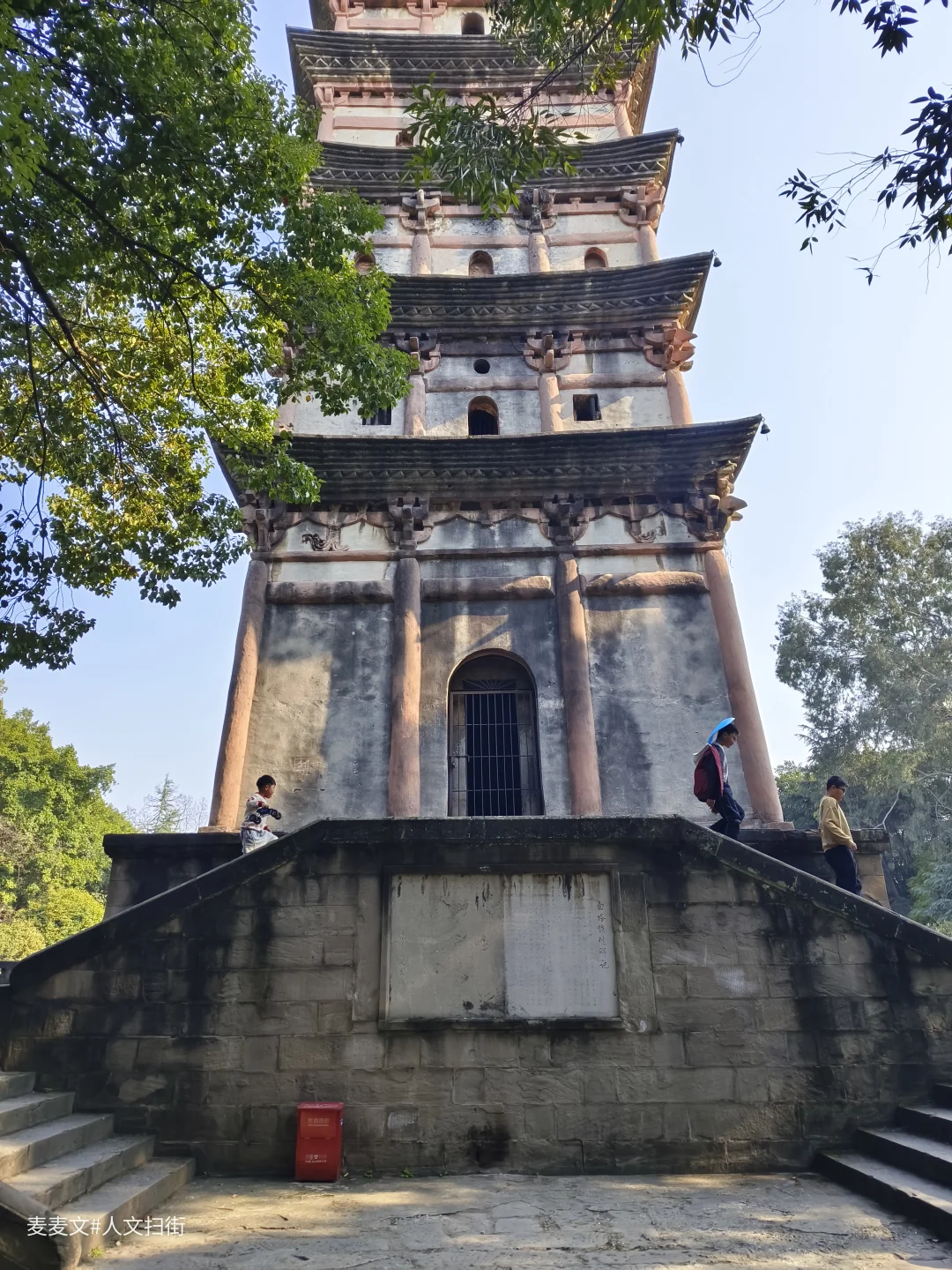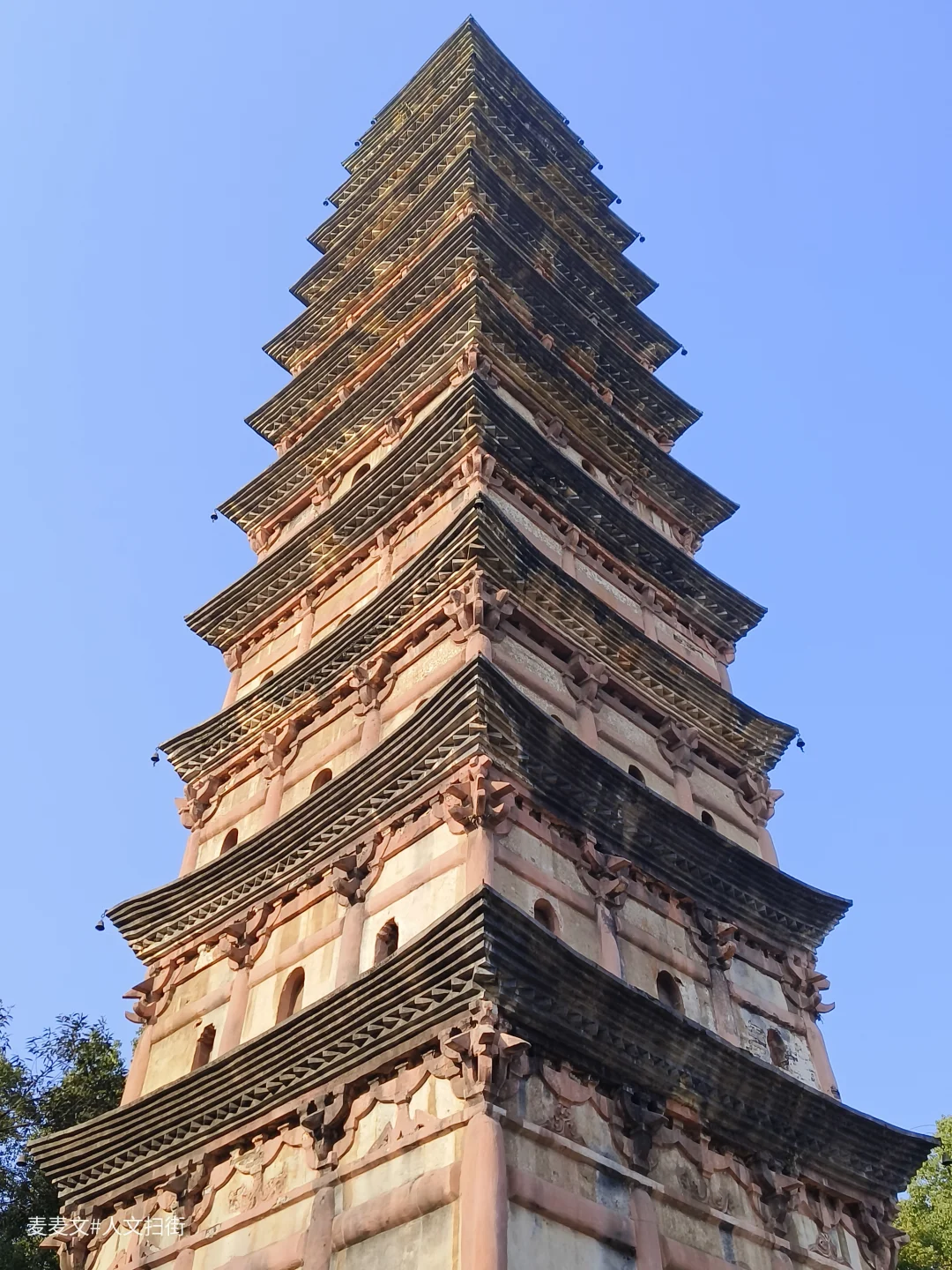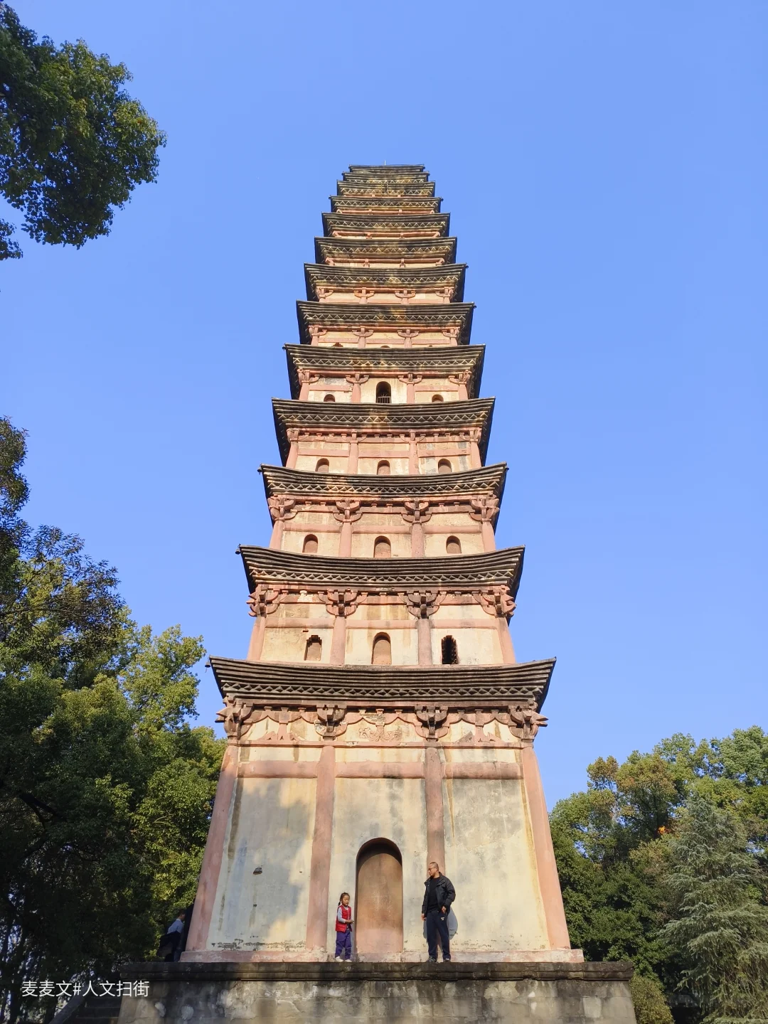古塔呈方形13层仿木构楼阁式砖塔,通高37.1米(亦有39.56米的测量版本)。塔基为须弥座,塔身青砖砌筑,隐出阑额、斗拱。二至十层有93个佛龛(原嵌造像),塔顶生铁铸就,是四川保留唐塔遗风的代表性宋塔。