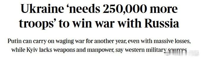 乌克兰需要再动员25万名士兵才能扭转战局来源:泰晤士报俄乌局势新进展乌克兰已放弃加入北约普京称已无兴趣等乌方从占领区撤出