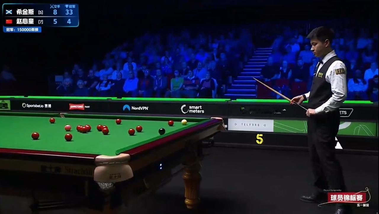 球员锦标赛决赛,第一阶段赵心童4:4战平巫师。决战在寅夜,赵心童战胜电量即将耗尽的希金斯夺冠有问题吗! 2026年斯诺克球员锦标赛决赛,由中国新秀赵心童对阵苏格兰巫师约翰.希金斯。昨天的半决赛赵心童和巫师分别6:5绝杀了马克.艾伦和贾德.特鲁姆普。 第1局,赵心童远台不进,希金斯2次上手,65:0拿到首局。 第2局,赵心童防守2次漏球,1次进攻失误,巫师3度上手,82:36,拿下第2局。 第3局,赵心童打出一杆58,一杆62,121:0取得胜利。 第4局,赵心童打进红球后,做了1杆高质量防守,迫失巫师犯错,单杆81,86:0取胜,大比分追成2:2。 第5局,巫师拼进长台,单杆83:0,大比分再次领先3:2。 第6局,巫师准度下降,赵心童通过耐心防守拉锯战觅得机会,几次上手后,82:0取胜,大比分再次战平。 第7局,赵心童冲击147失败,单杆81分,大比分首次领先,4:3。 第8局,比赛十分胶着,双方失误不断,最终巫师104:11,扳平大比分。 决赛第二阶段在凌晨3时进行,赵公子有望背靠背夺冠。