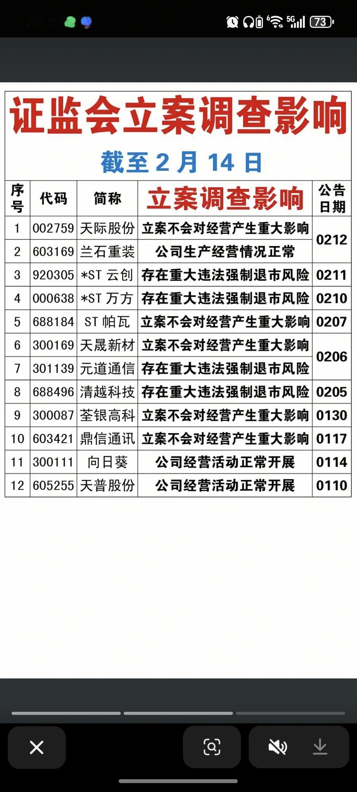 2.23周一 近期被证监会立案调查公司! 17家公司公告被立案调查 12家公